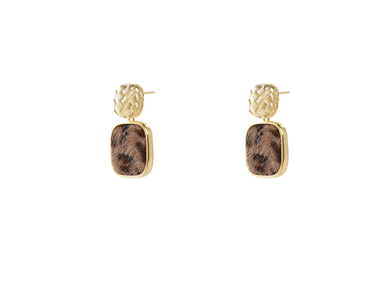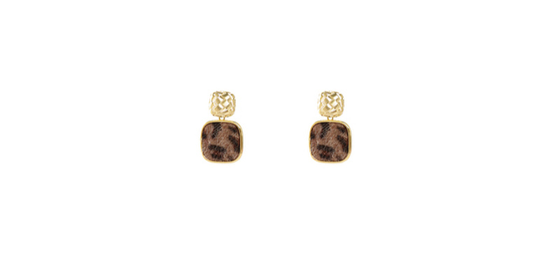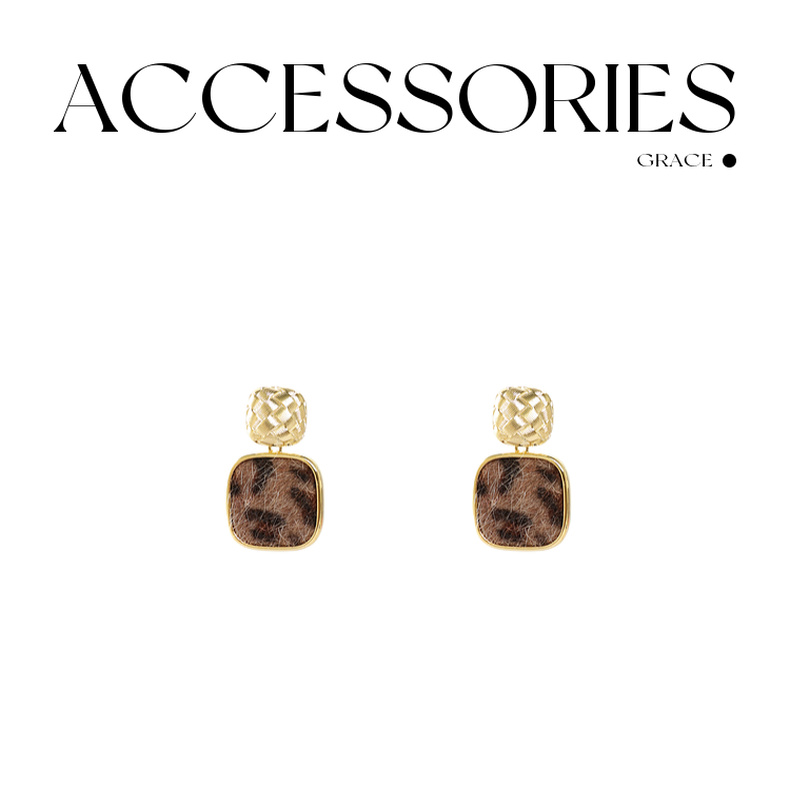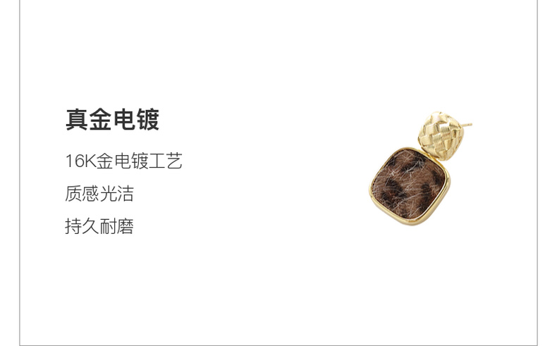 【豹纹马毛】三彩2025新款双层方形耳环S925银针编织纹复古个性