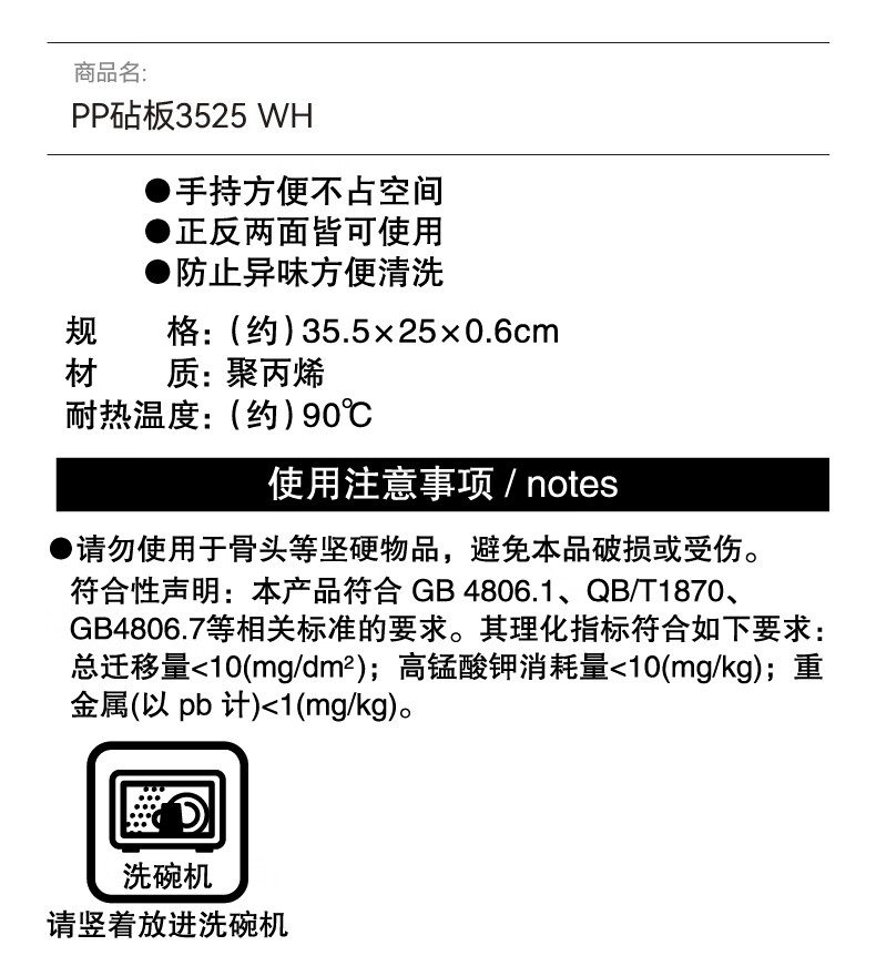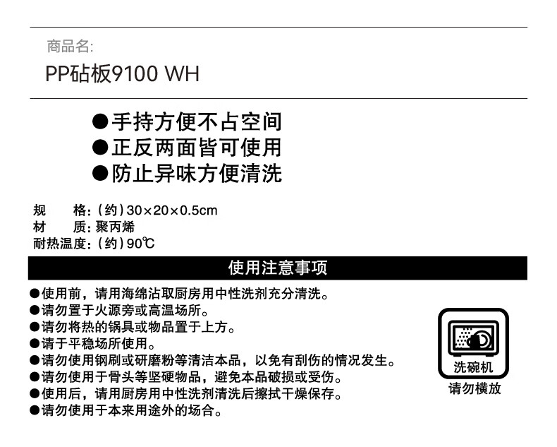 NITORI宜得利家居 家用厨房用品简约长方形PP砧板 WH