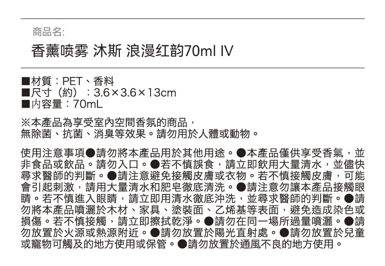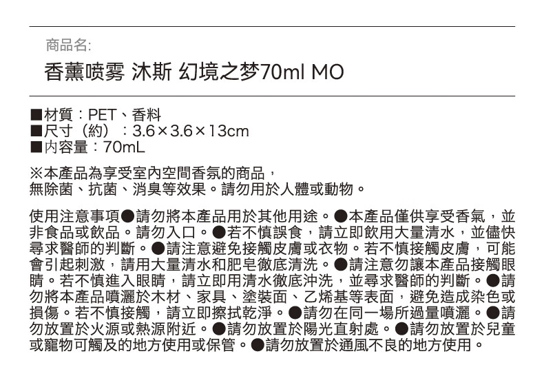 便携香氛空气清新香薰喷雾沐斯70ml