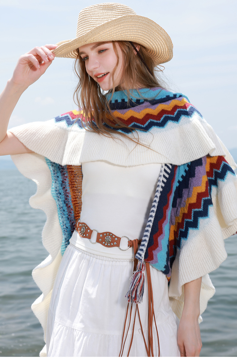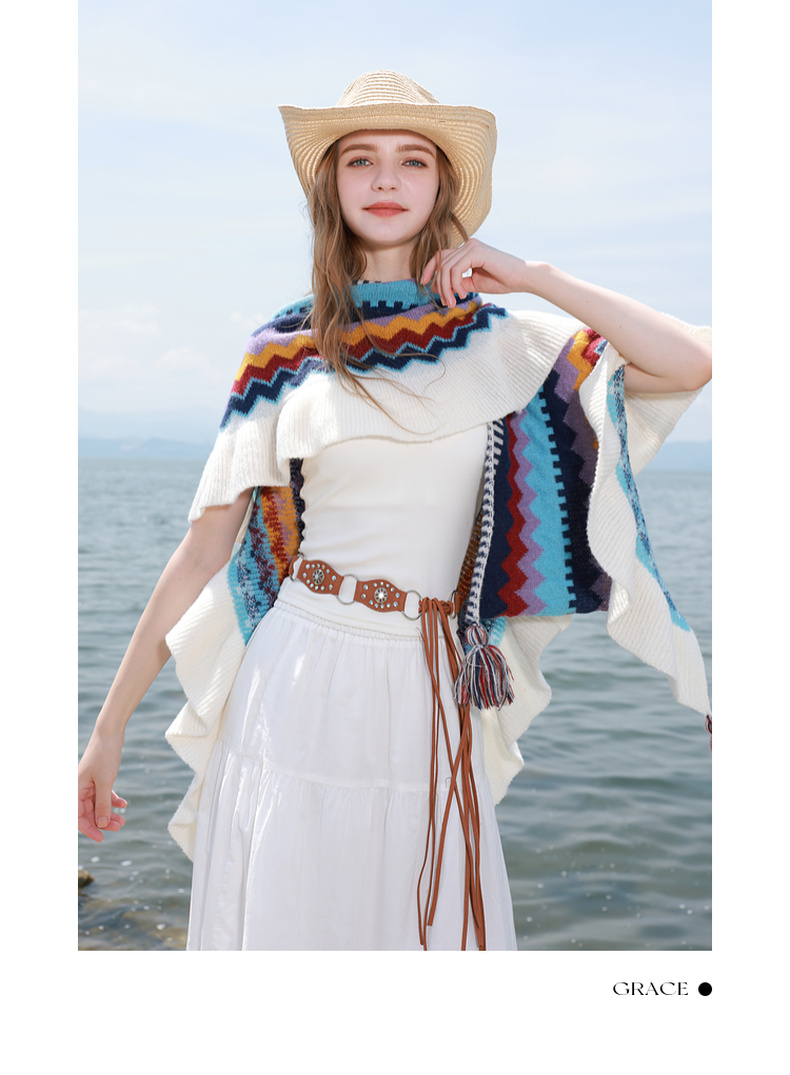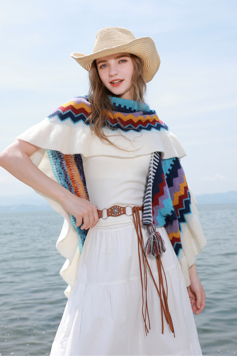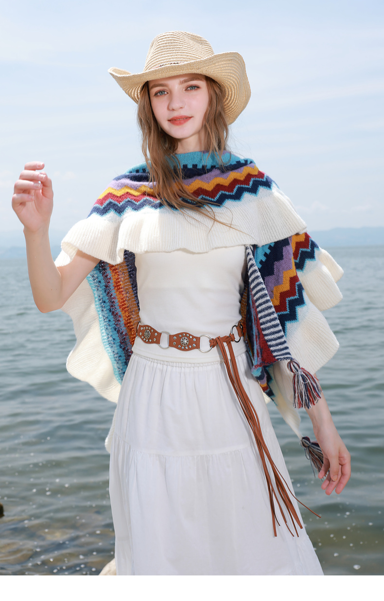 三彩2025新款波嬉风皮革腰带金属圆环雕花铆钉流苏西部牛仔风
