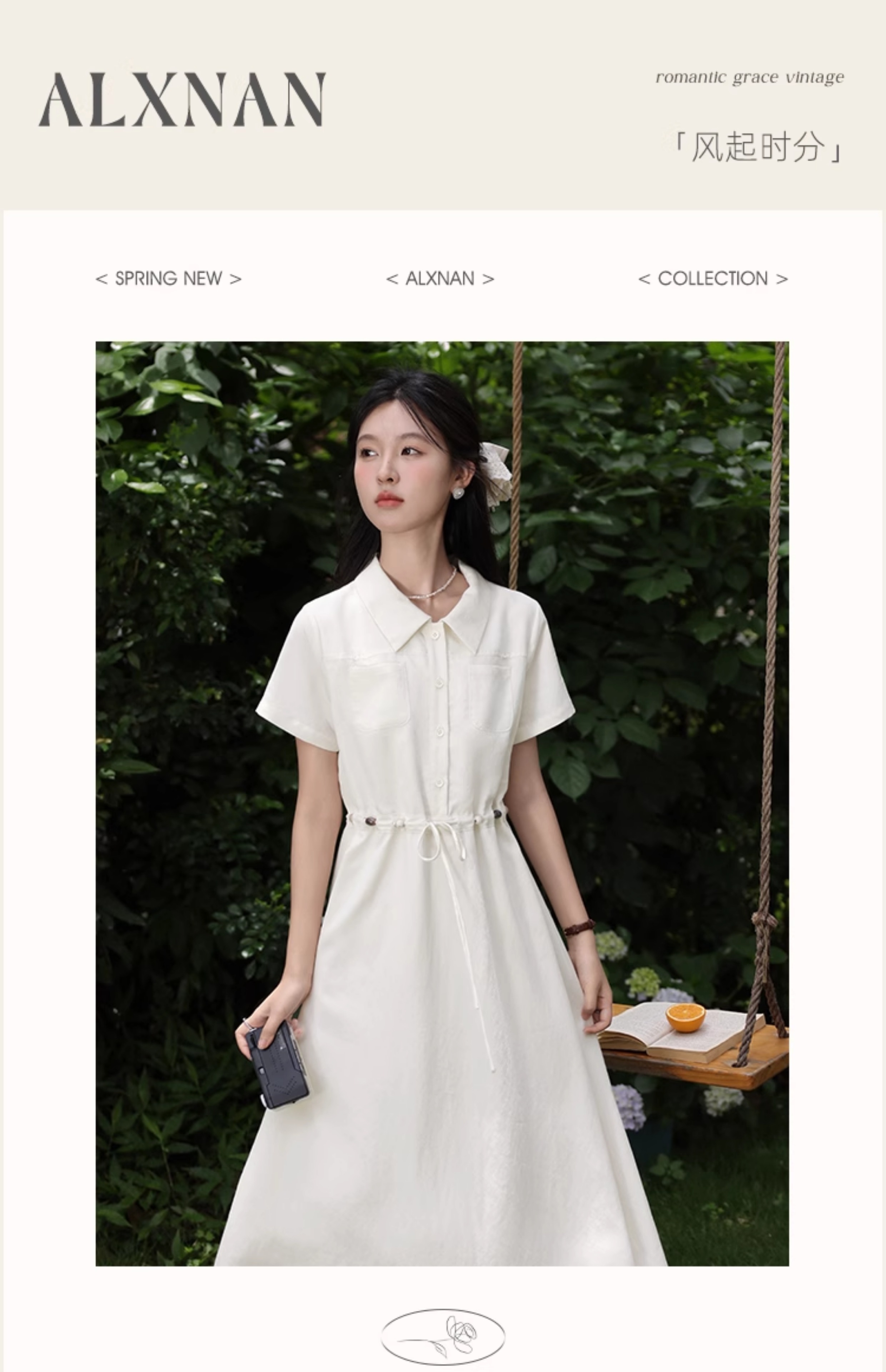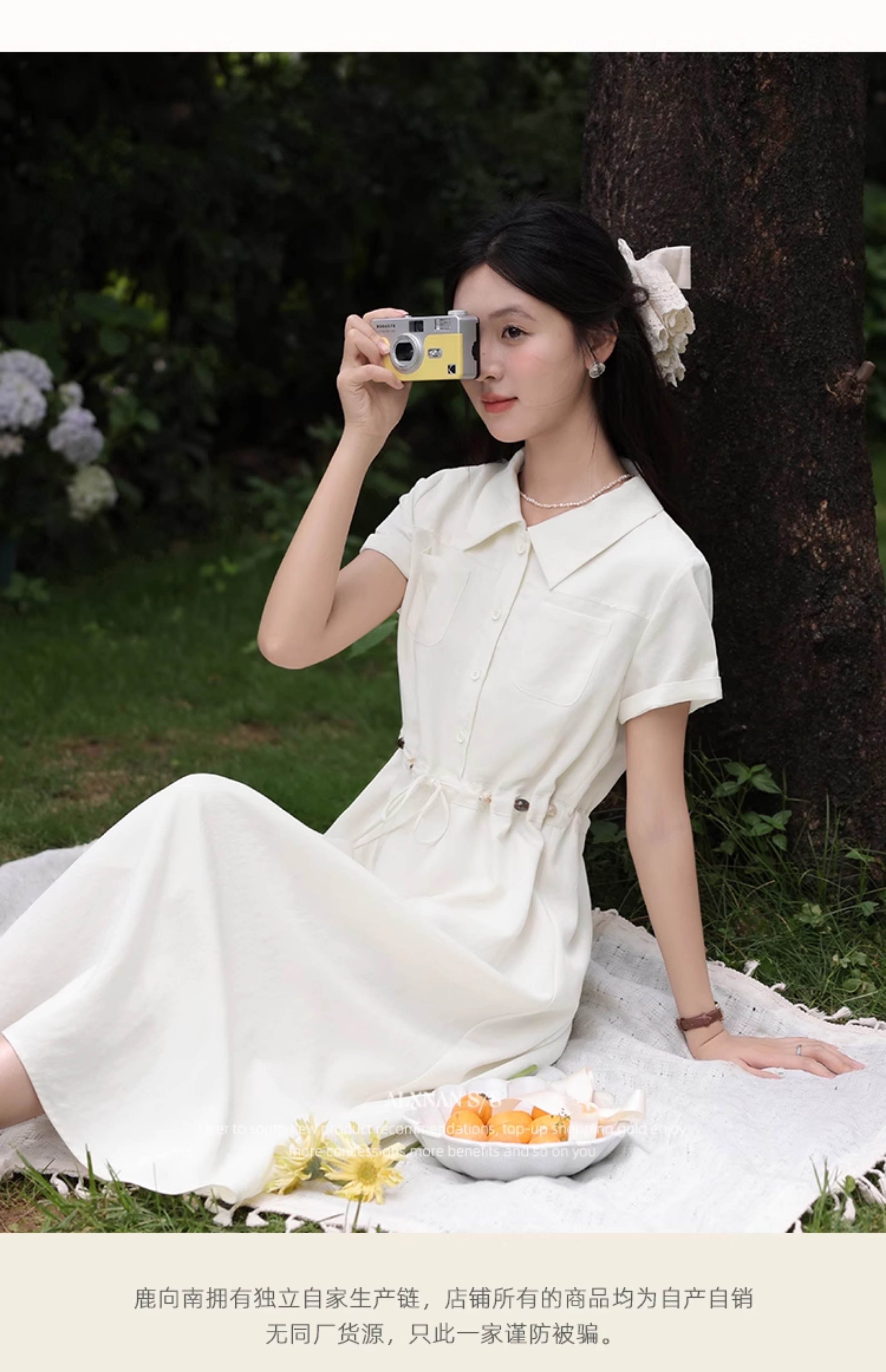 鹿向南「风起时分」夏季气质女连衣裙通勤减龄小众收腰显瘦长裙子