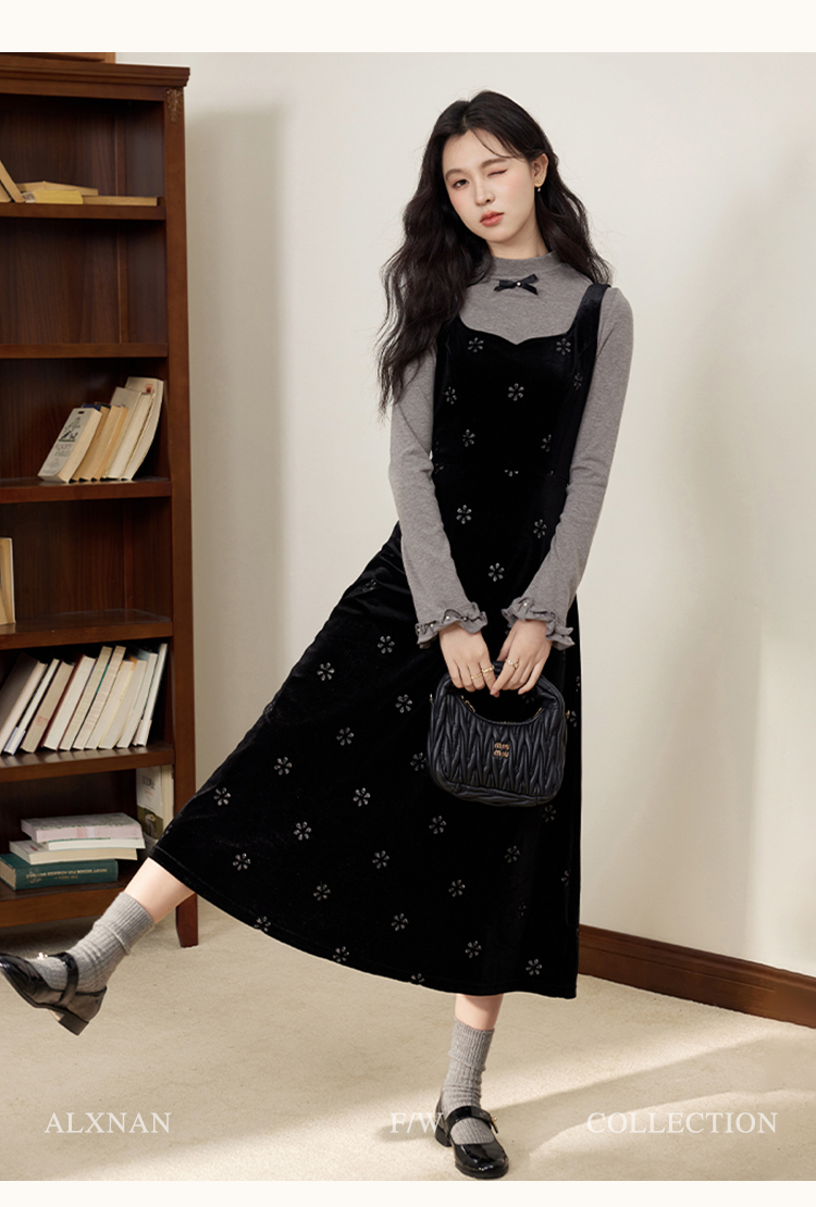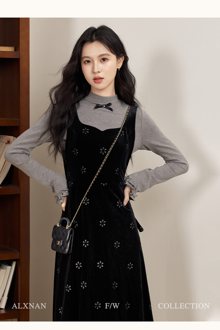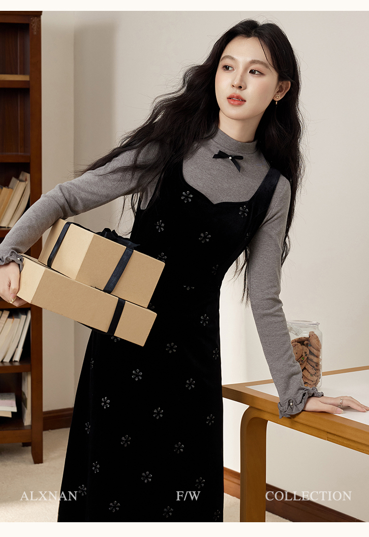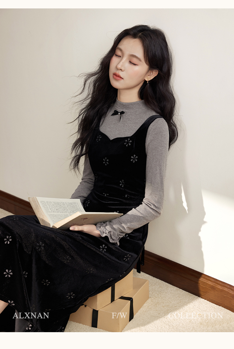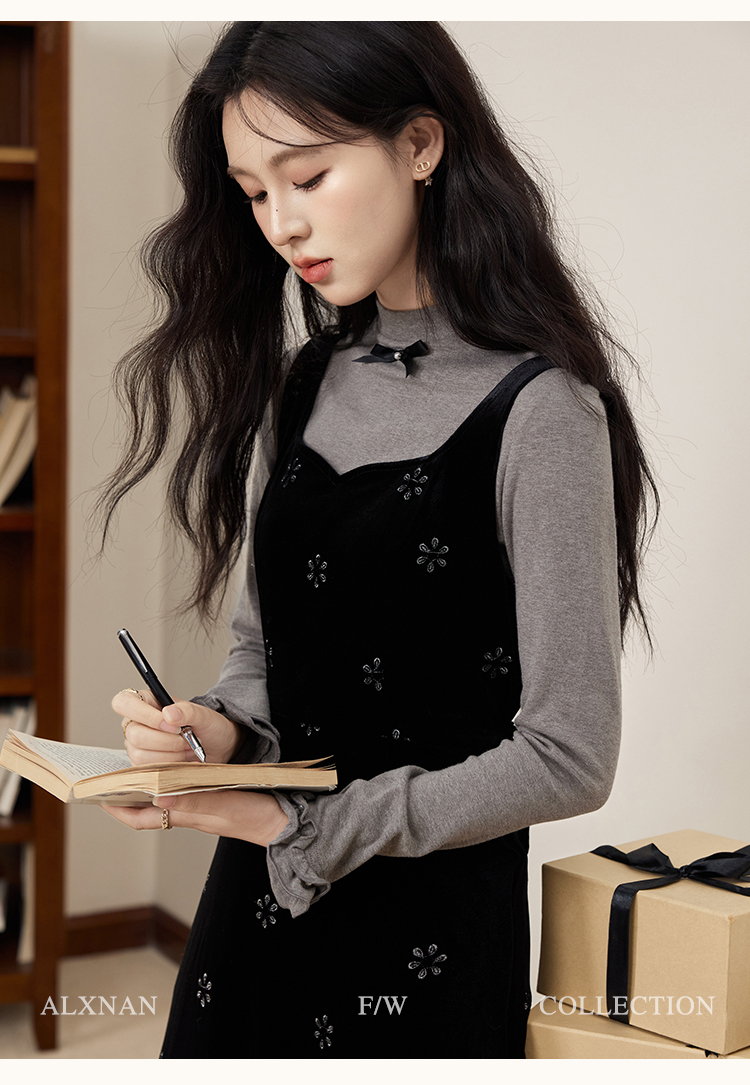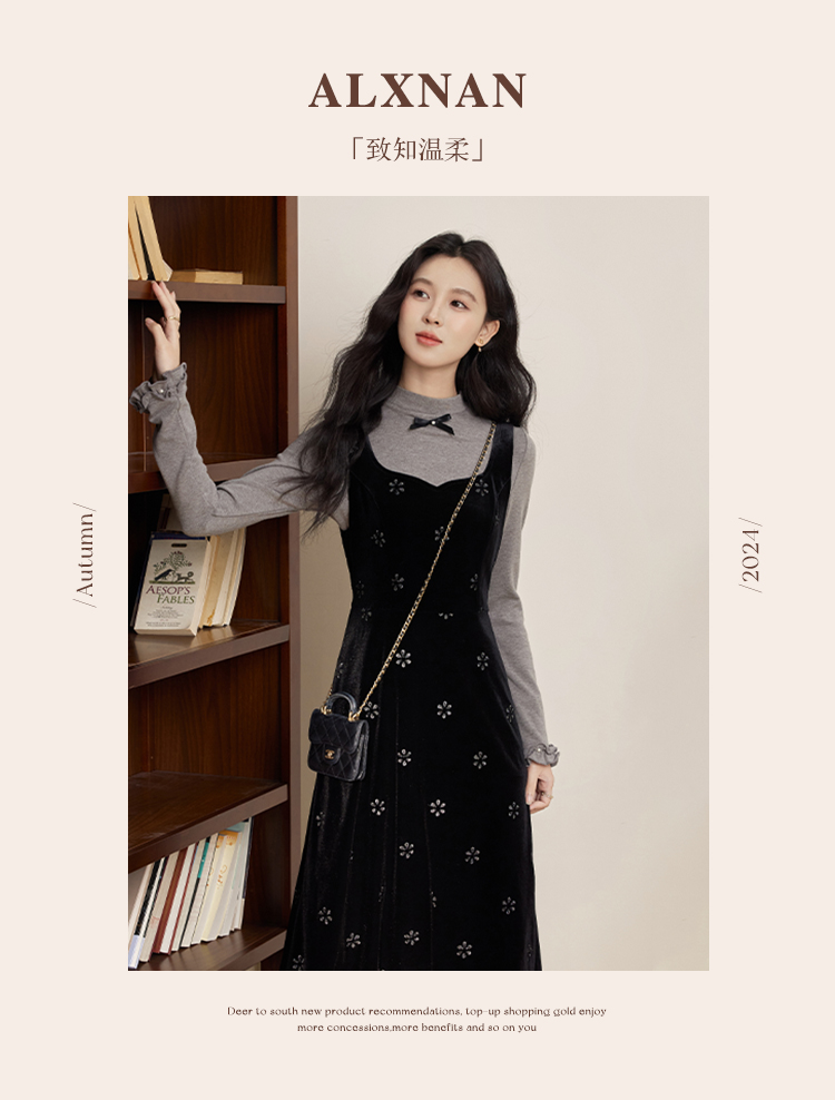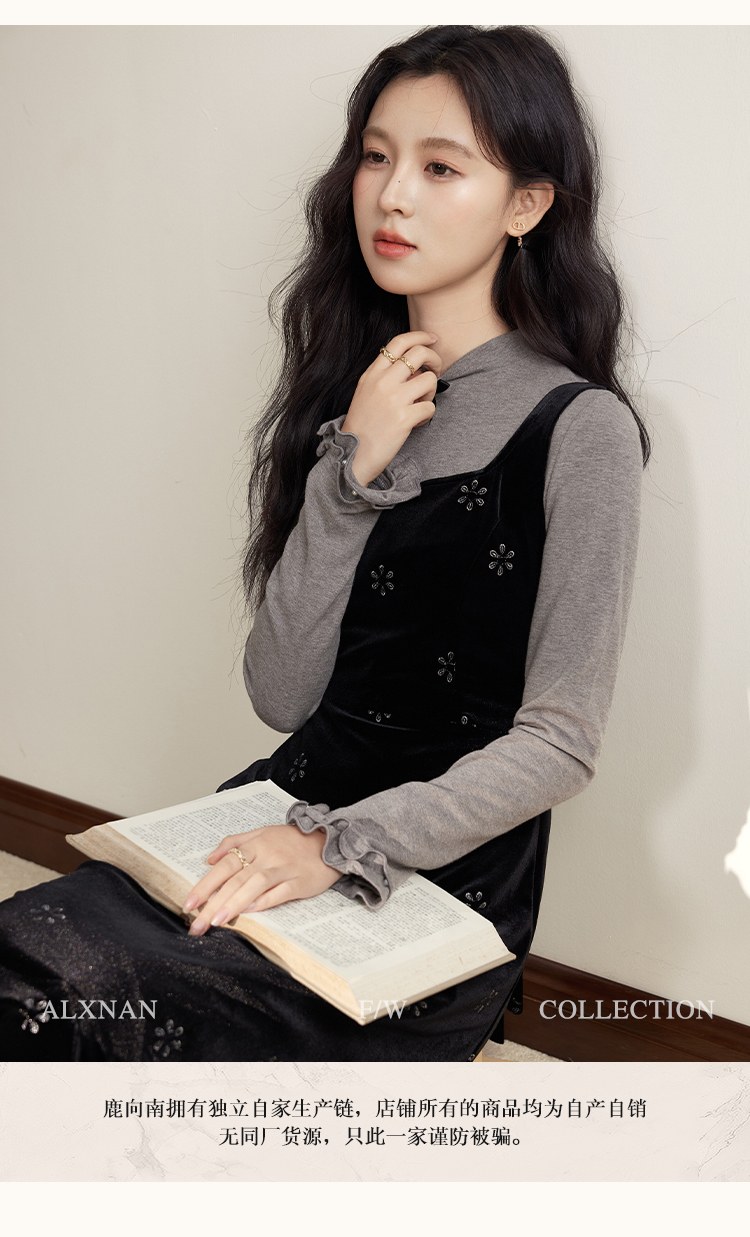 鹿向南「视线焦点」法式复古气质女秋季设计感显瘦假两件长袖上衣DYL663031