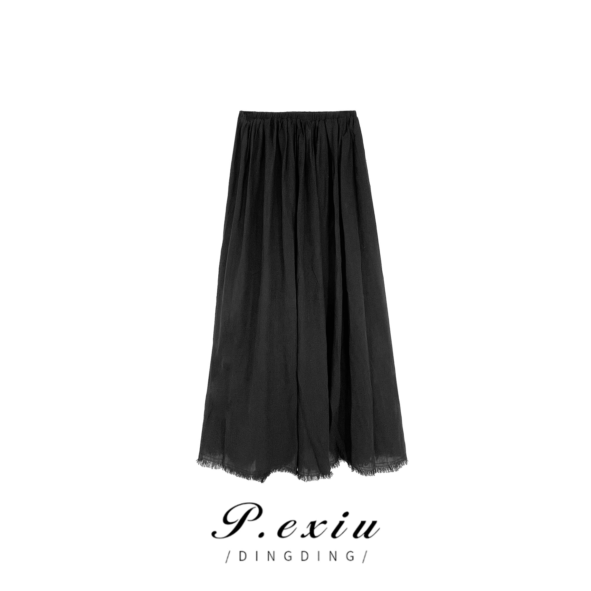 03-4潘依绣丁丁宠粉【现货】0412 PanYiXiu/潘依绣天-丝-麻-料-高级感松紧腰毛边半身裙 20872T-1