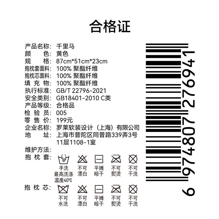 罗莱软装 千里马 抱枕 87cm*51cm*23cm