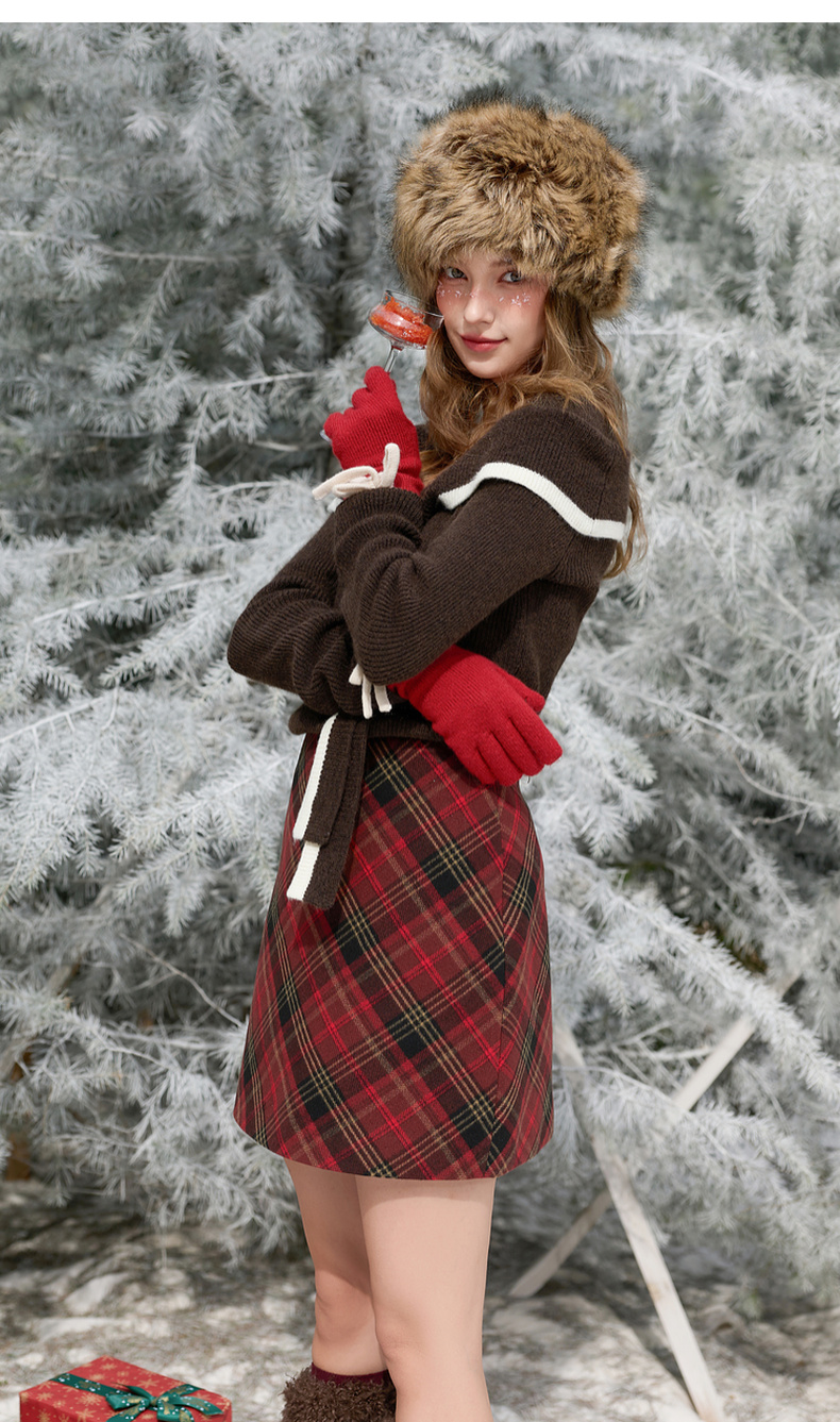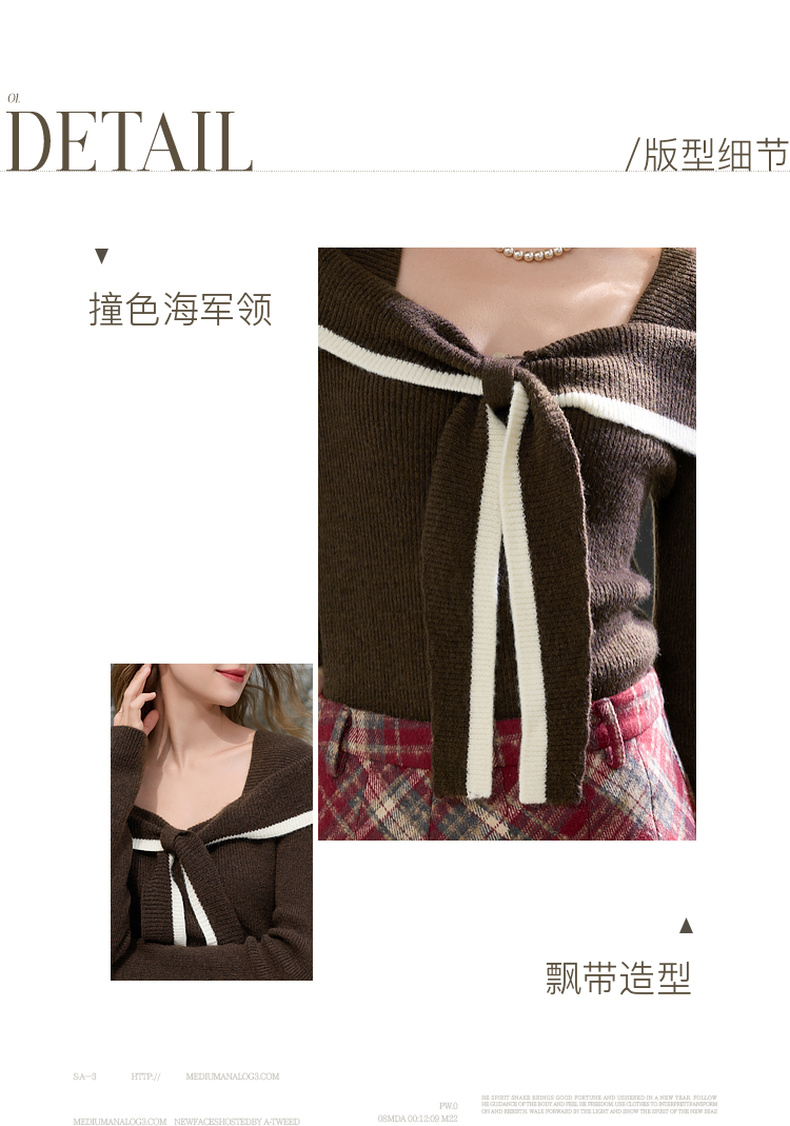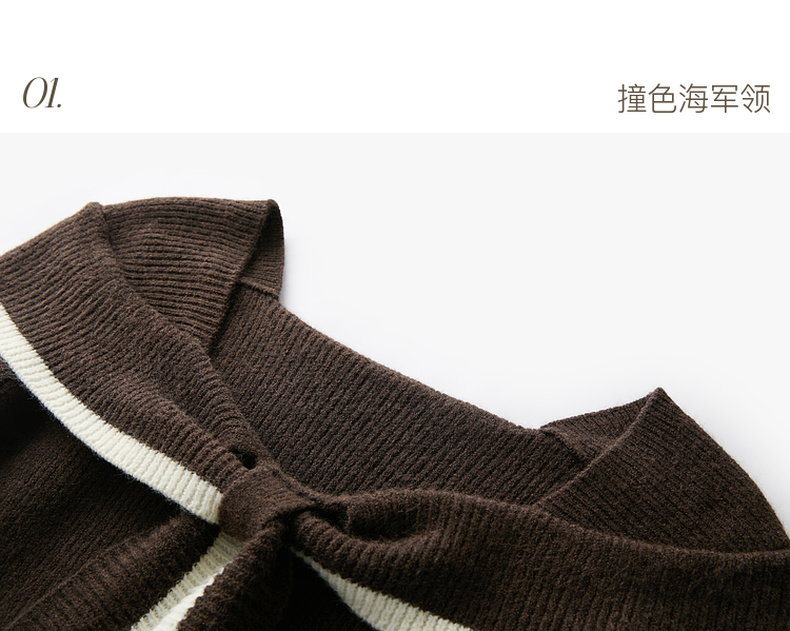 三彩独醒2025冬季新款休闲简约针织衫长袖海军领套头毛衫上衣F