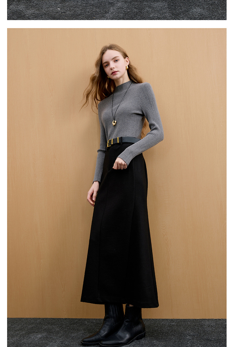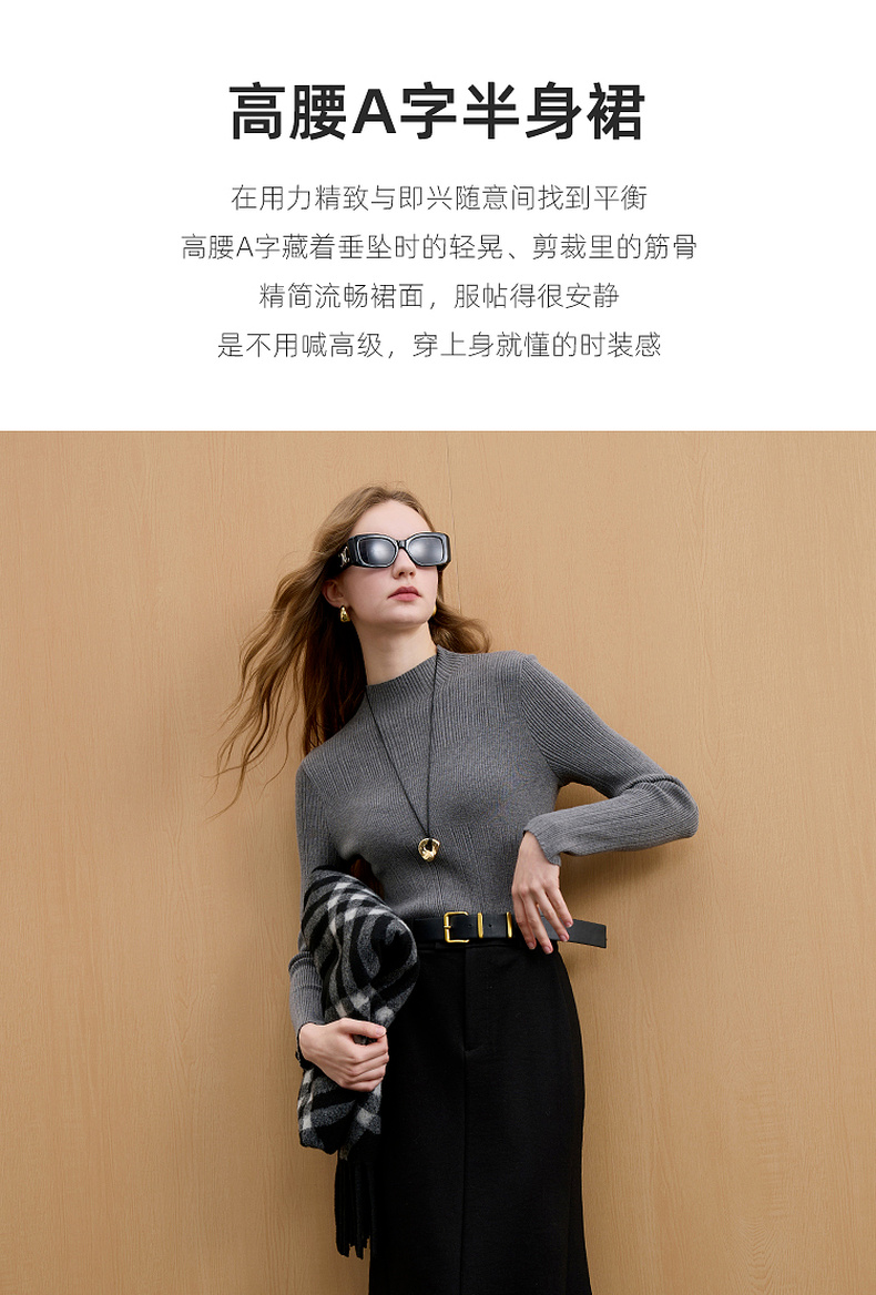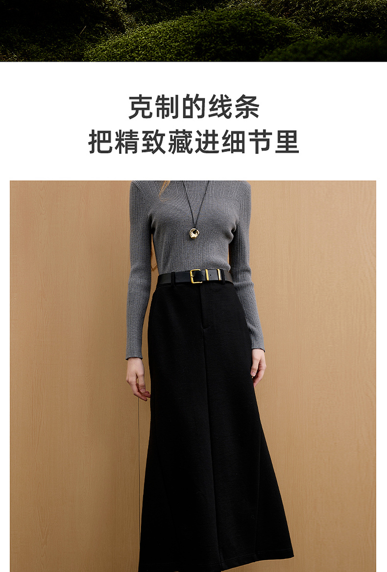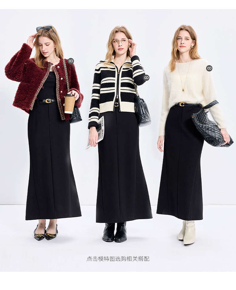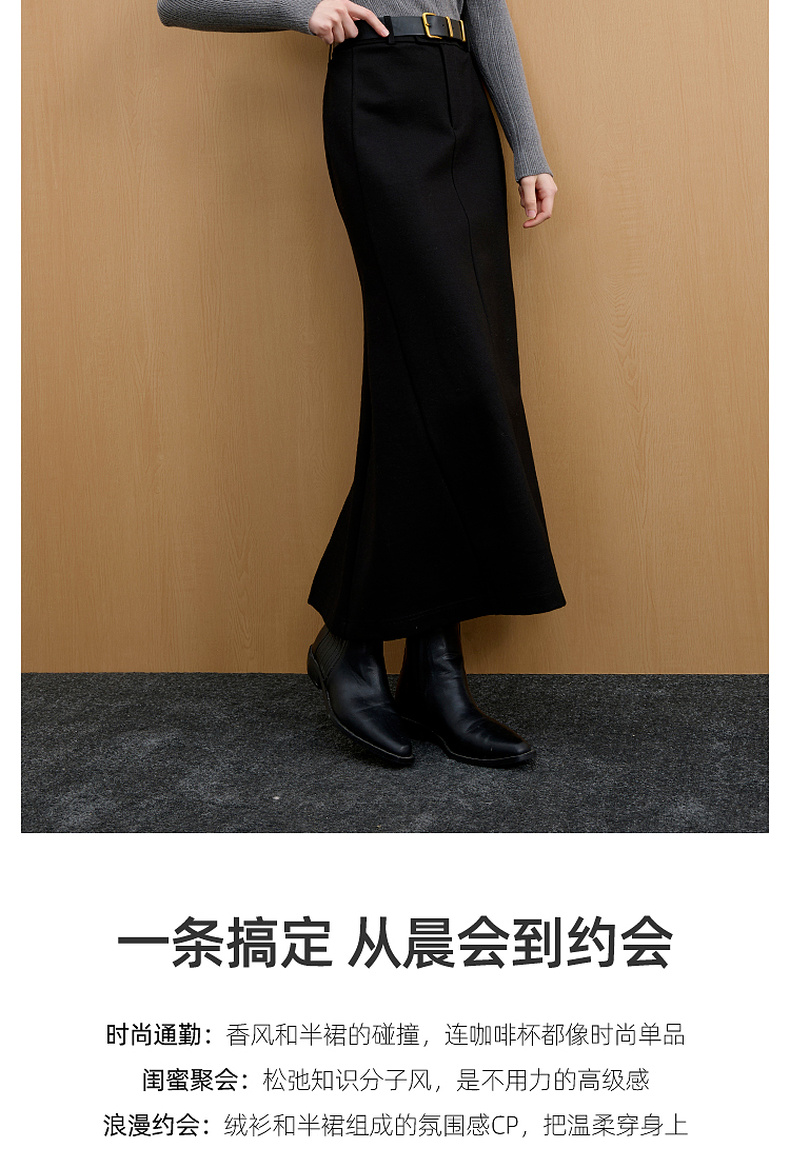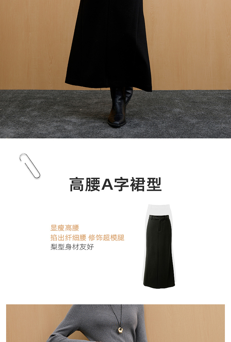 三彩2025冬季新款简约高腰半身裙气质通勤A字裙开叉长裙优雅M