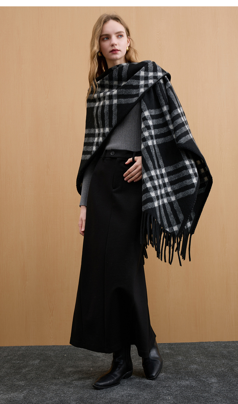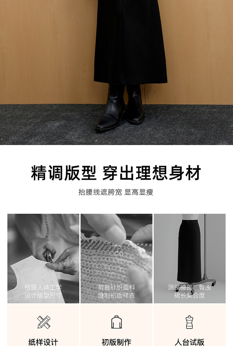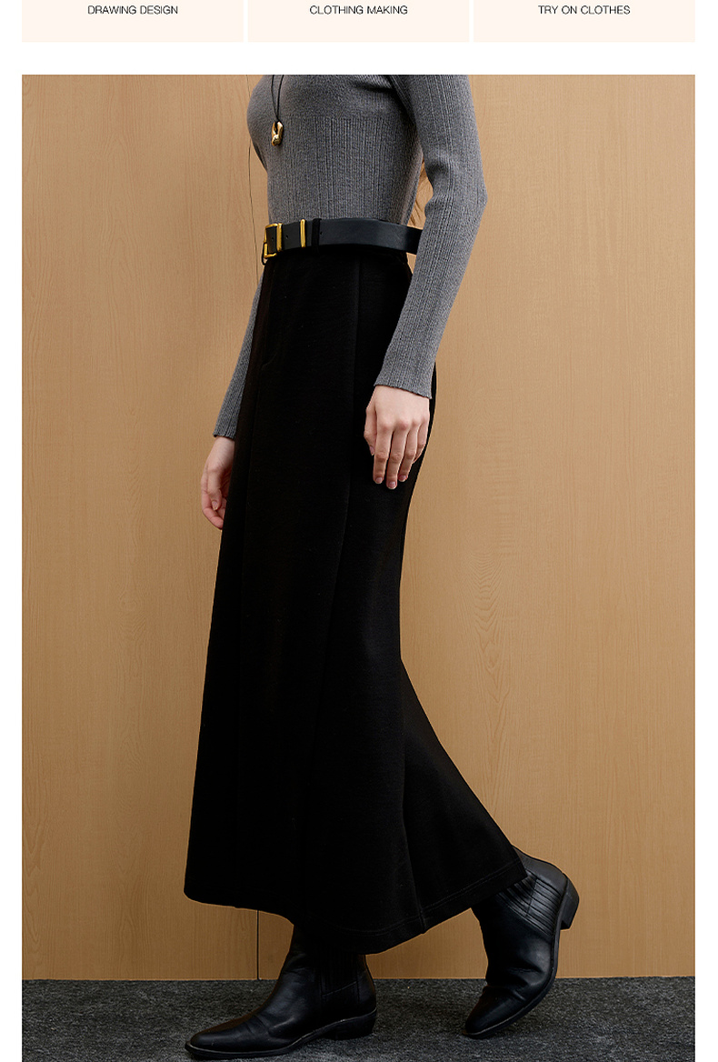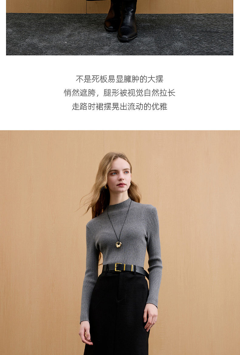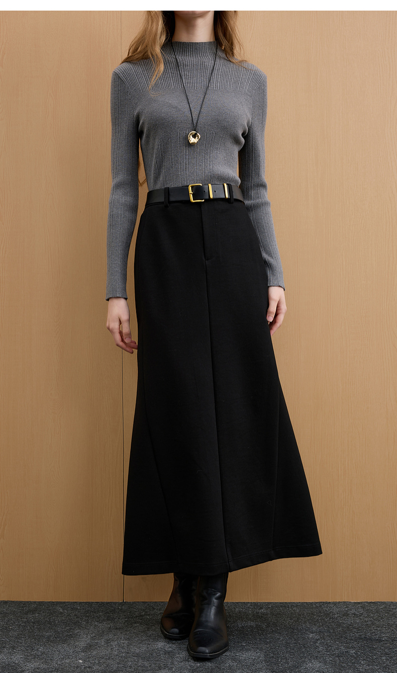 三彩2025冬季新款简约高腰半身裙气质通勤A字裙开叉长裙优雅M