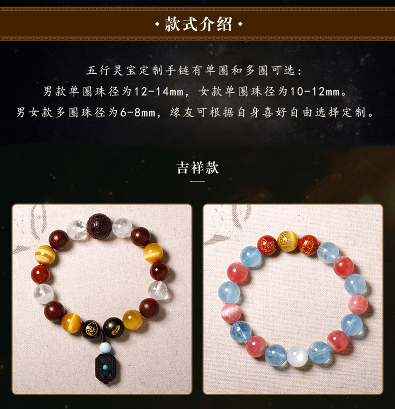 慈元阁生辰五行定制水晶男女情侣手链串多宝石转运珠招财桃花