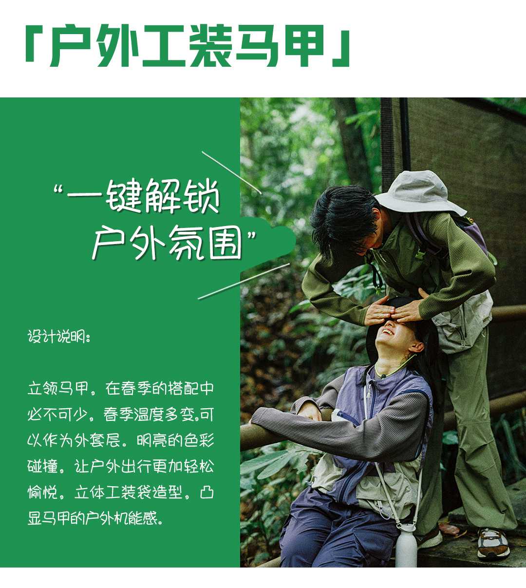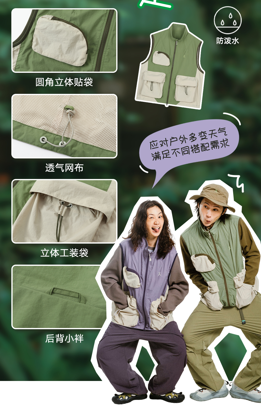 【春夏上新-福利特惠】ACMEITEM爱棵米 户外亲子机能防泼水工装马甲合体立领马甲男女GAG3090843A /GAG3090869A