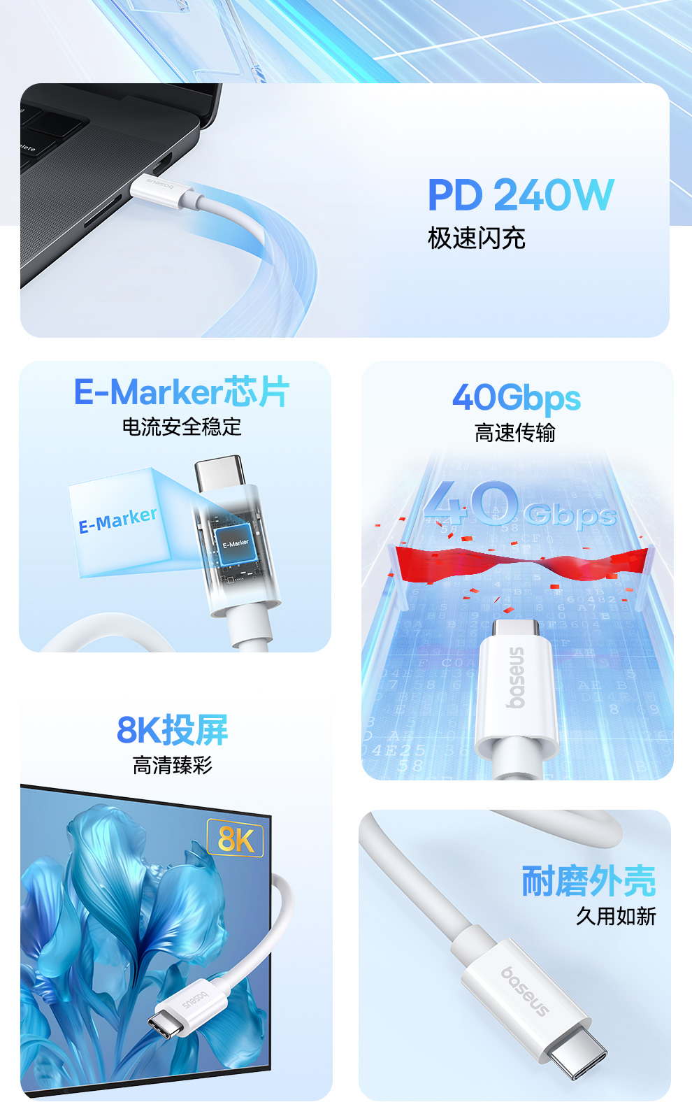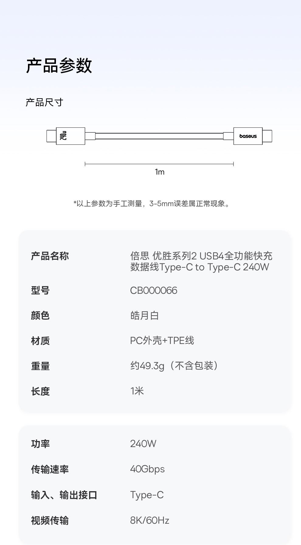 baseus/倍思 优胜系列2 USB4全功能快充数据线 CTOC 240W CB000066