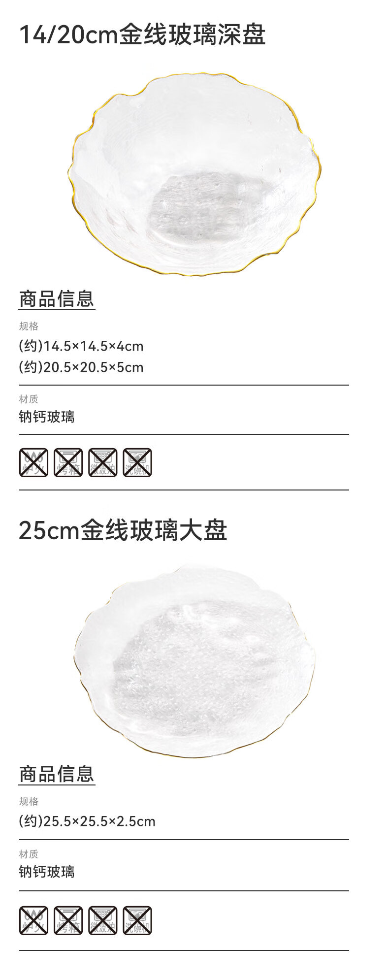金线玻璃深盘 20cm