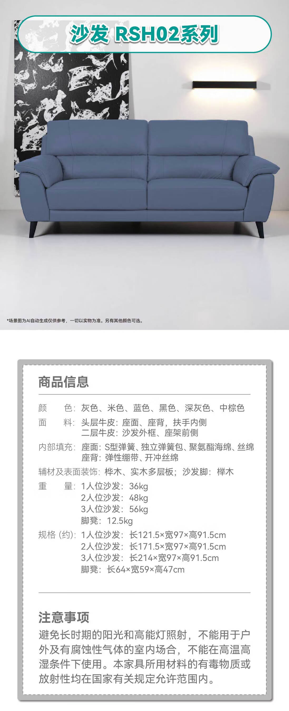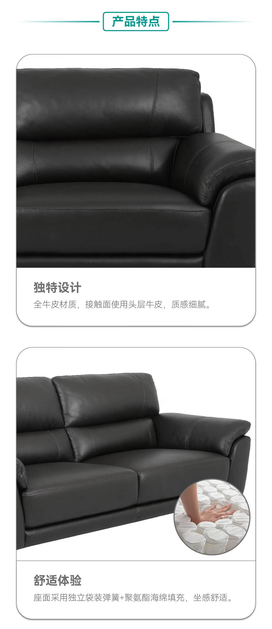 【家具】 客厅大气真皮沙发独立弹簧座垫定制沙发 RSH02