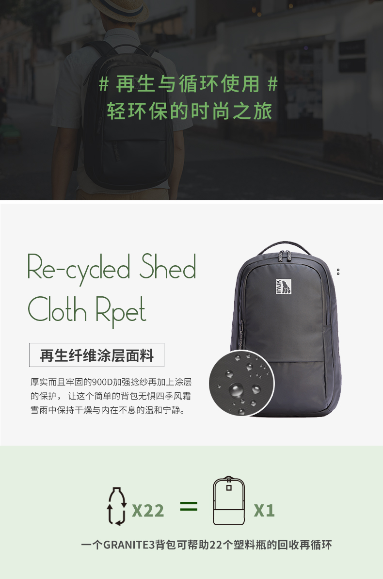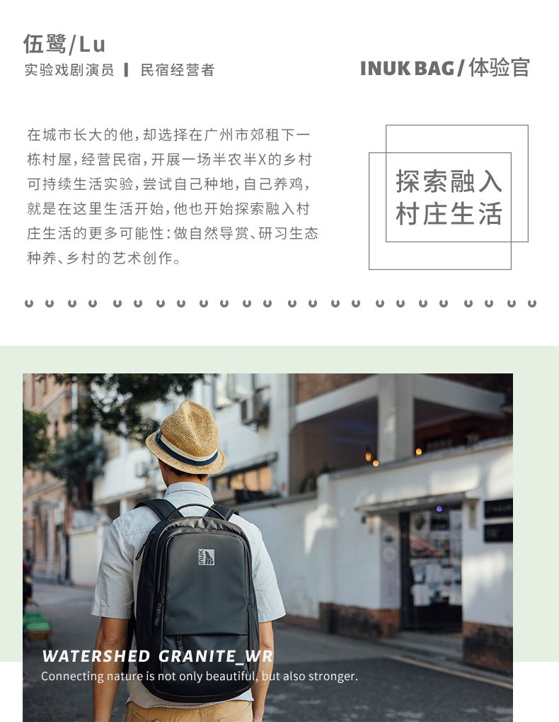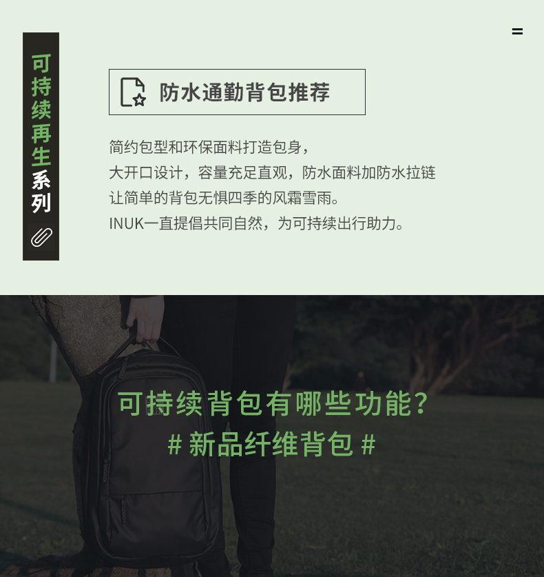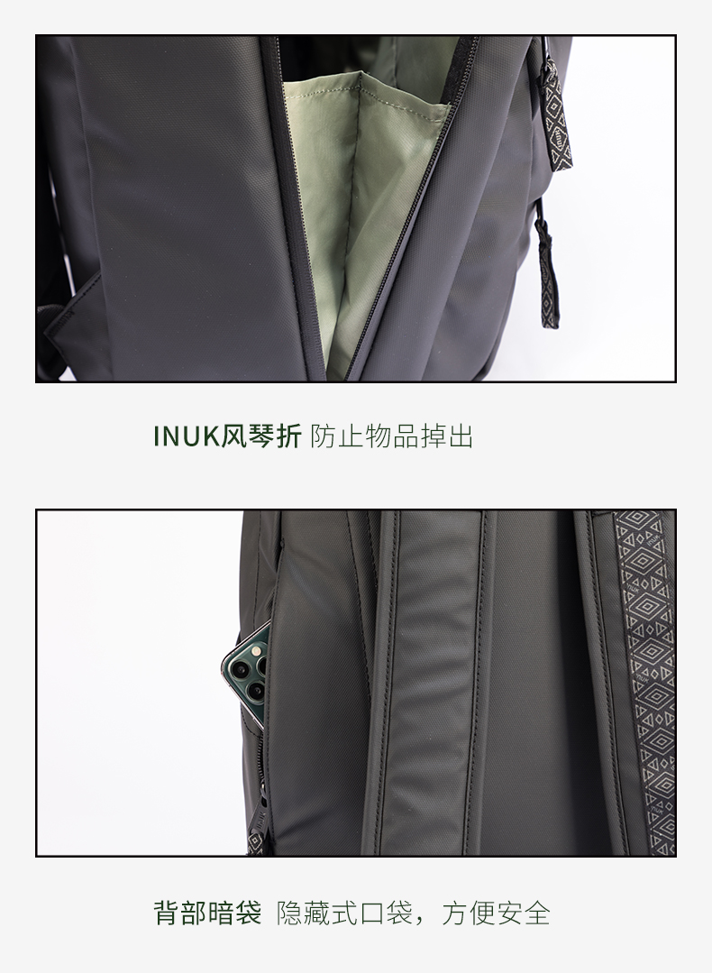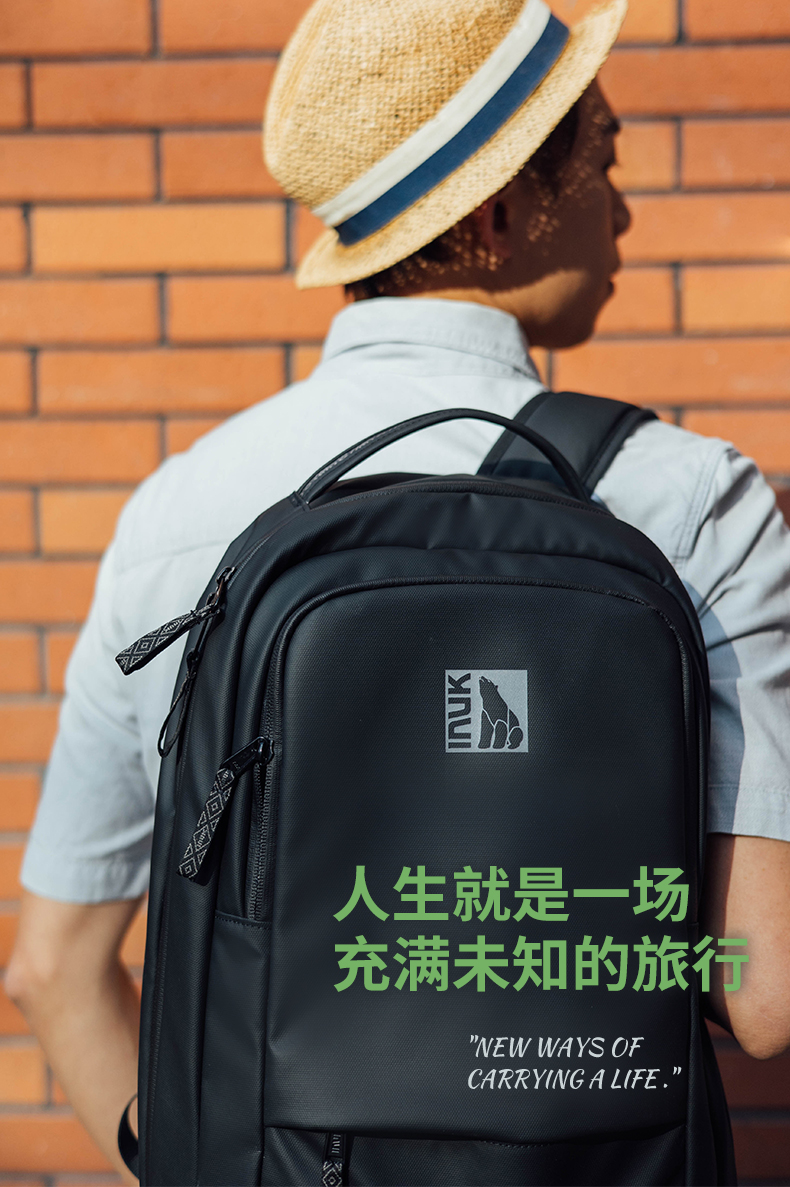 INUK轻便14寸电脑包环保时尚大容量防水通勤男女考研双肩包