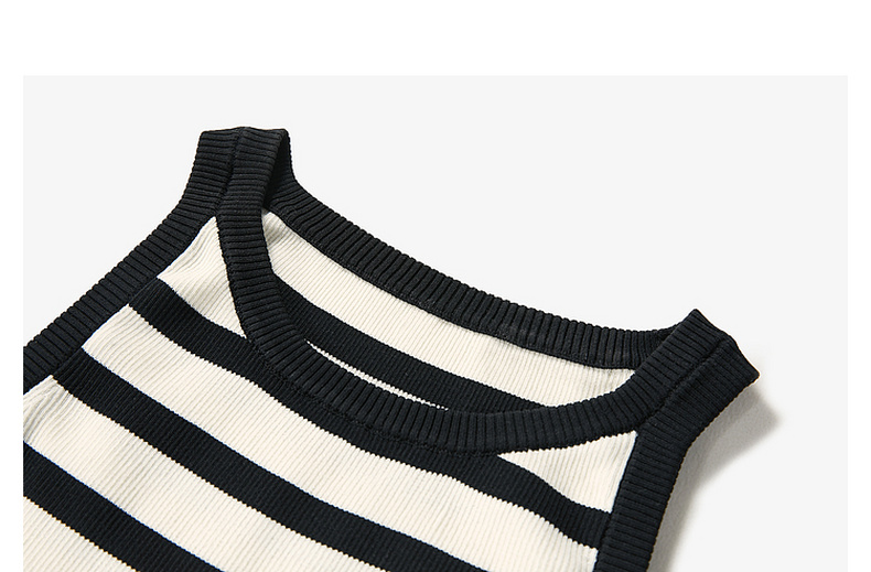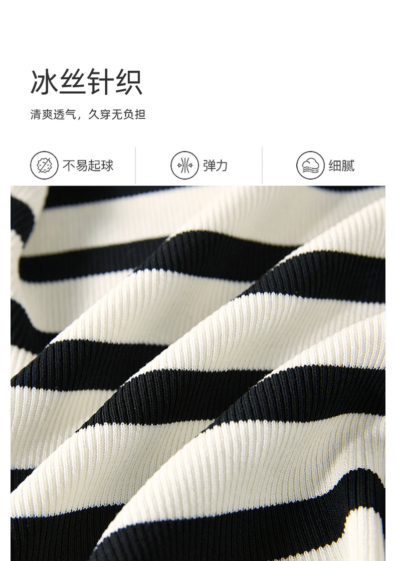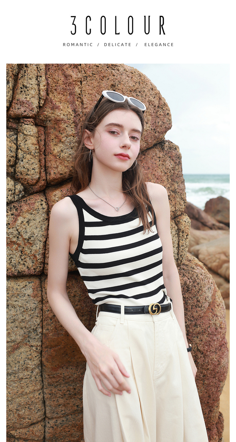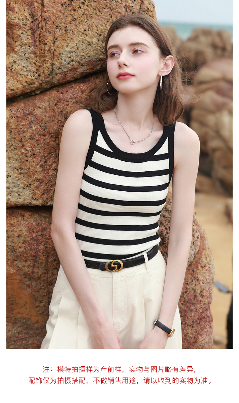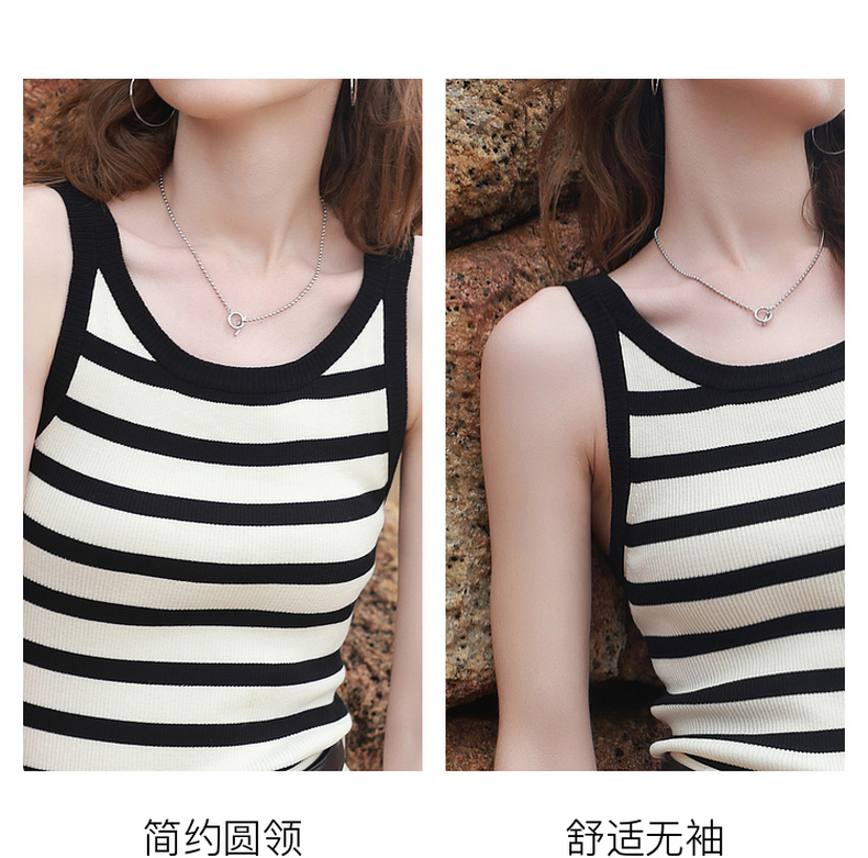 三彩2026夏季新款条纹背心吊带圆领无袖修身短款冰丝针织衫显瘦M