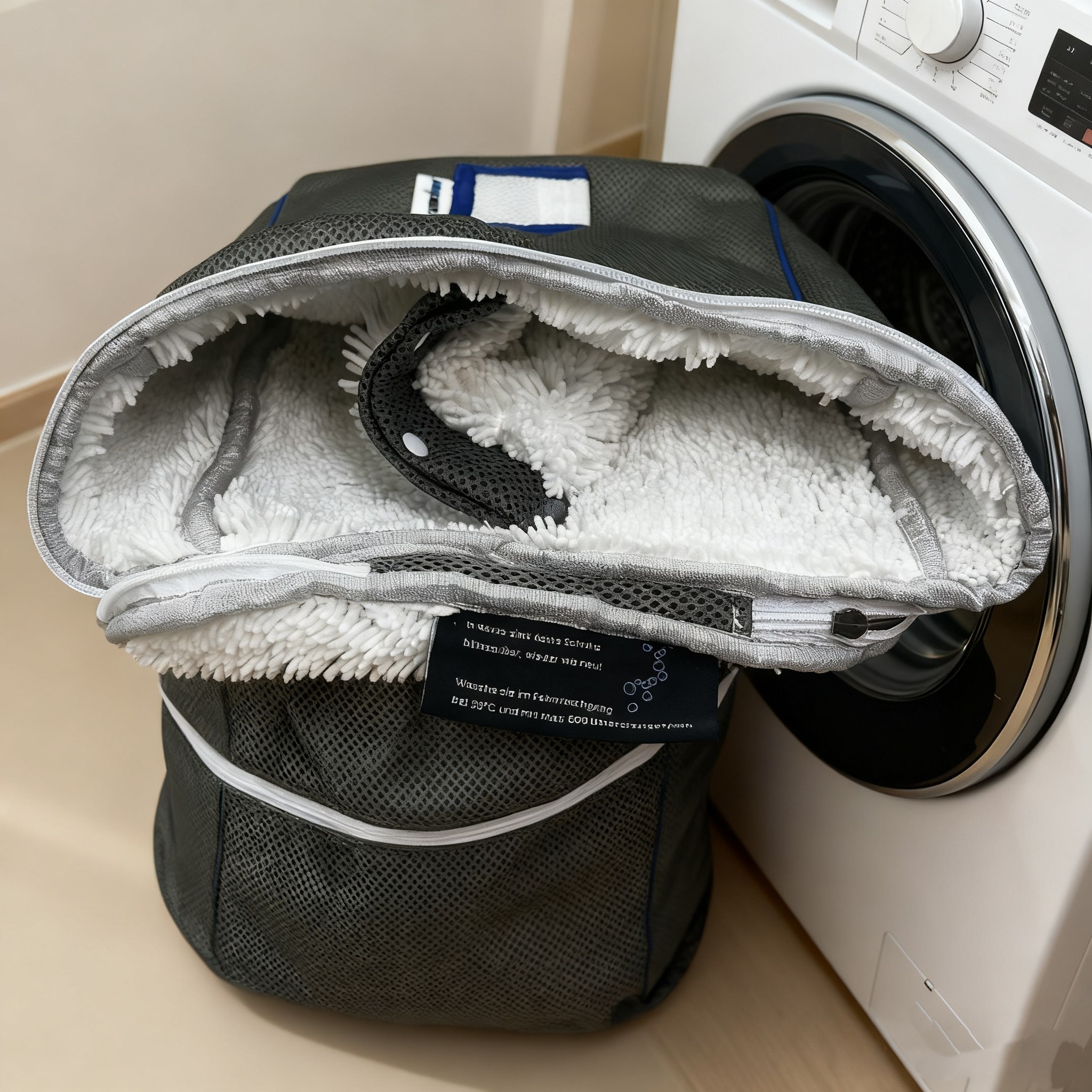 高密度纤维不易脱落,精细清洁且不会损坏鞋子;坚固过滤网兜,高渗透深度去污,优化网孔结构确保水流充分穿透,加速沥干过程,配合洗衣机脱水程序,提升整体清洁效率。