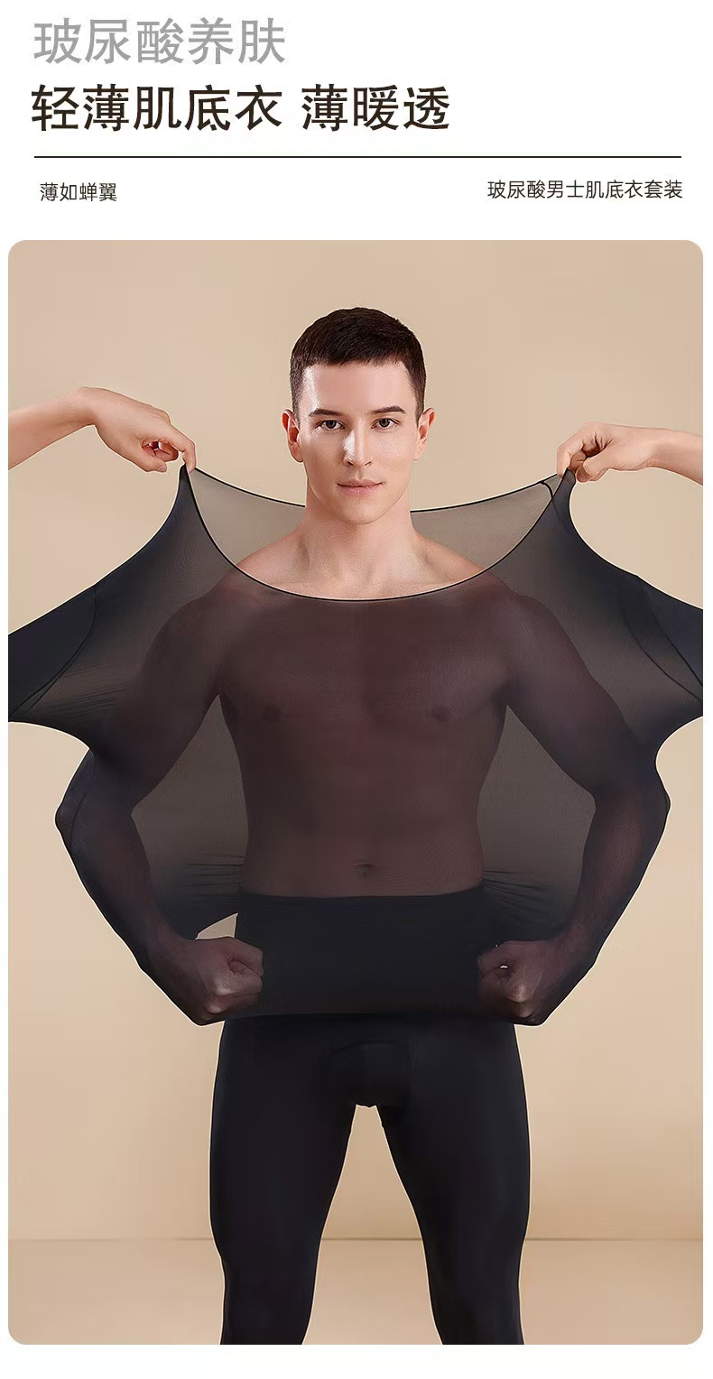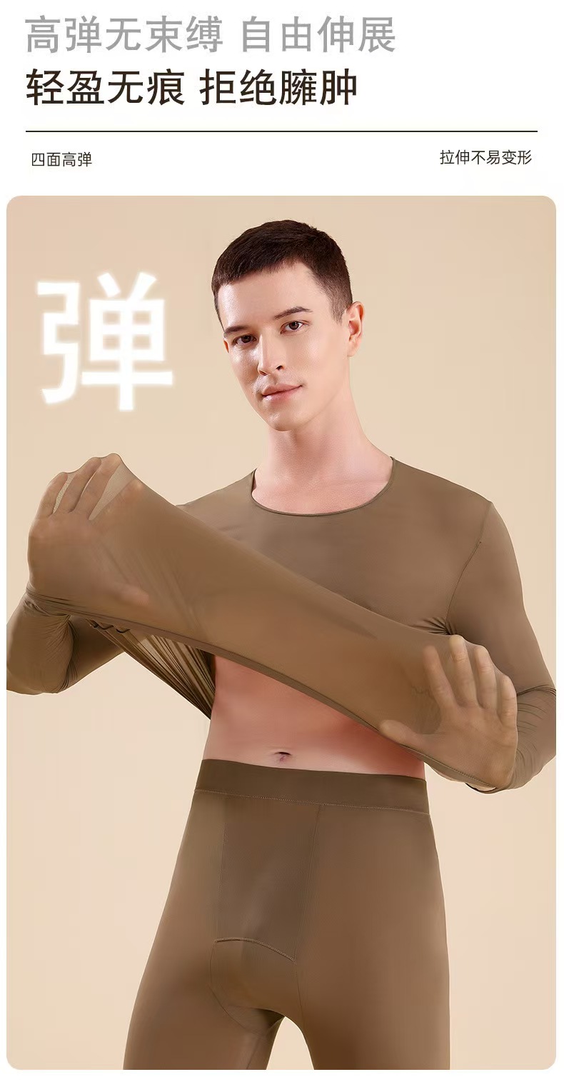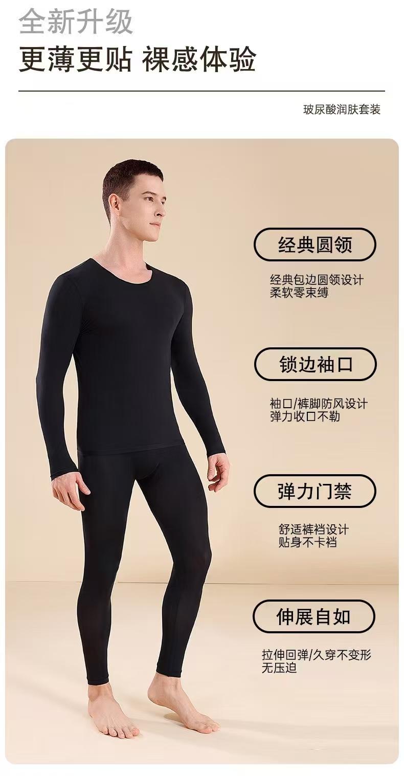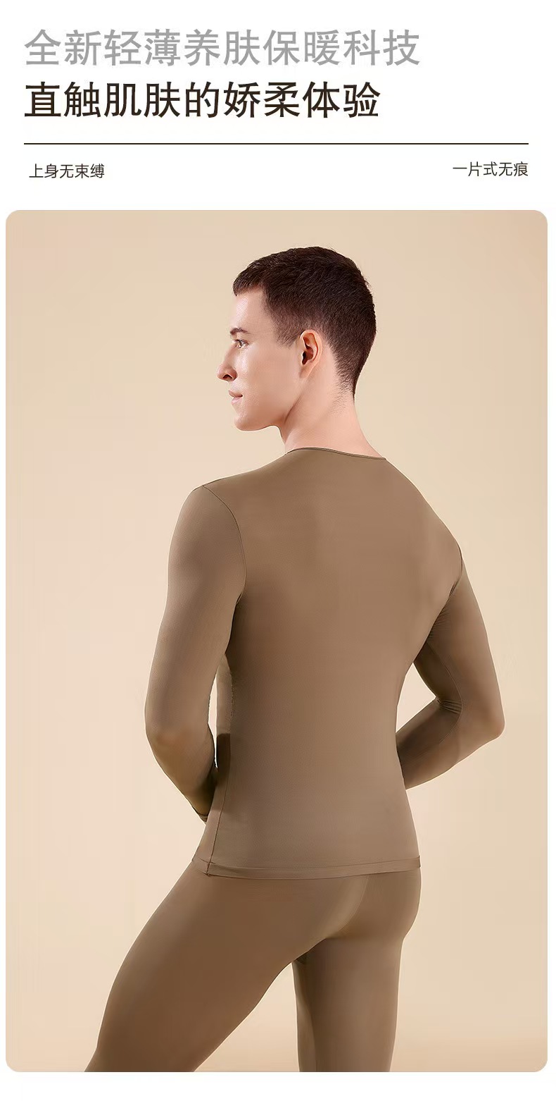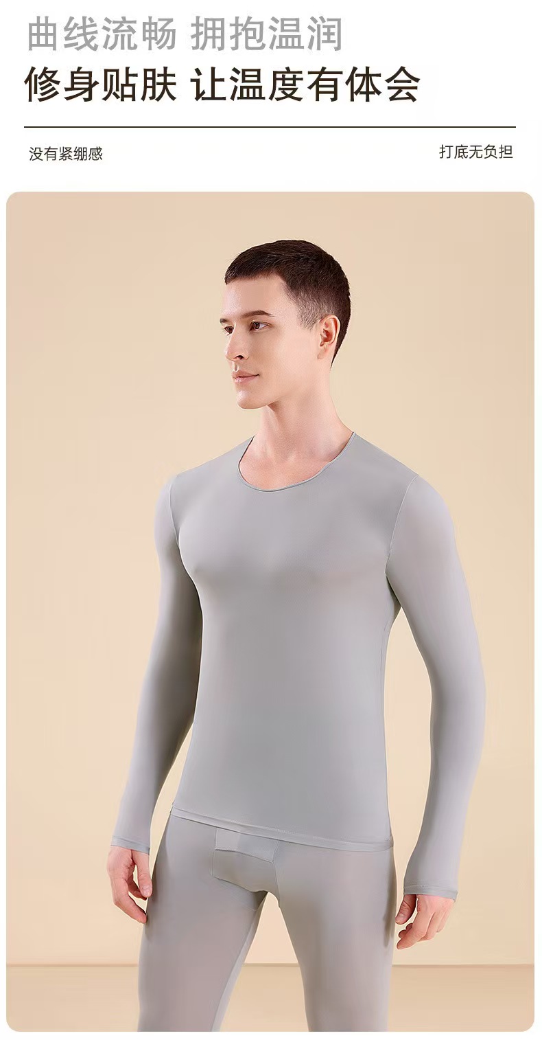 【秋鹭】25908款号男士超薄保暖内衣恒温无痕玻尿酸肌底衣圆领打底纯色秋衣秋裤套装—rxs