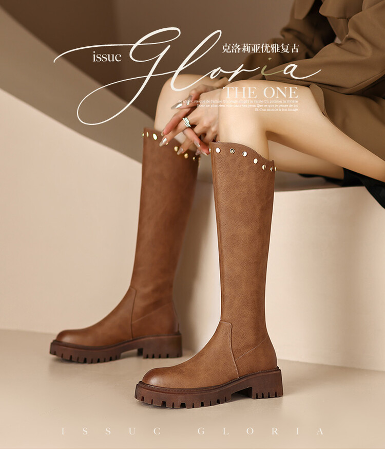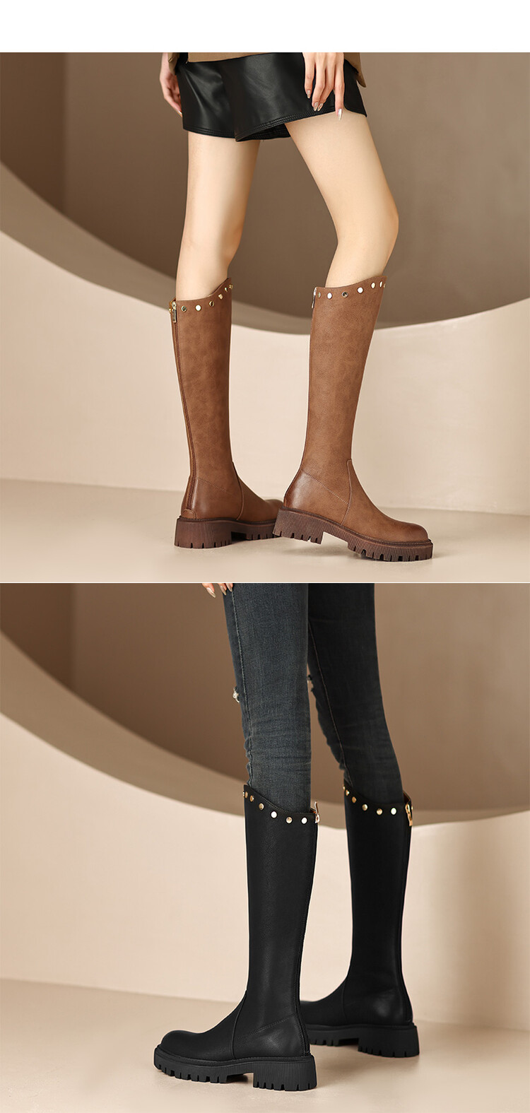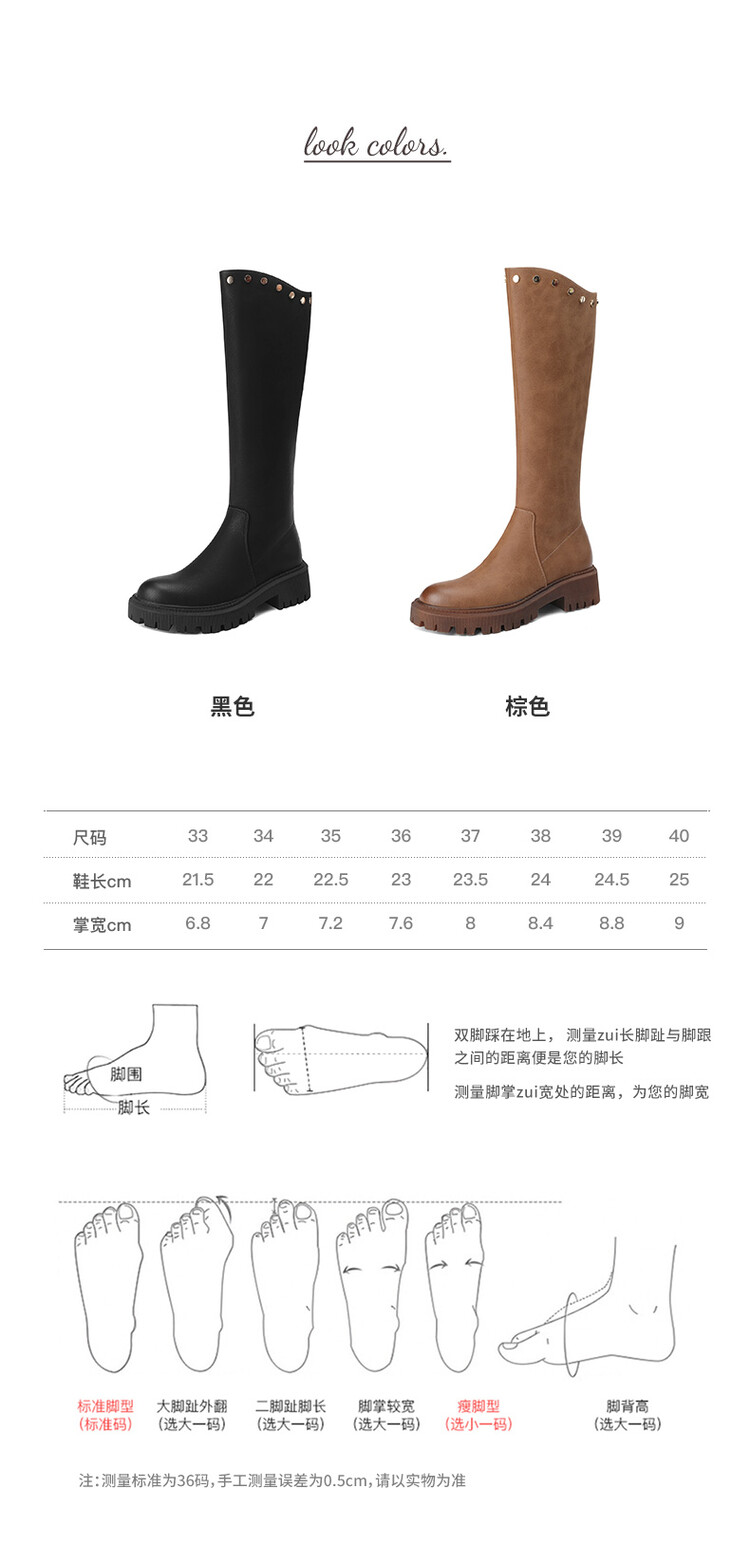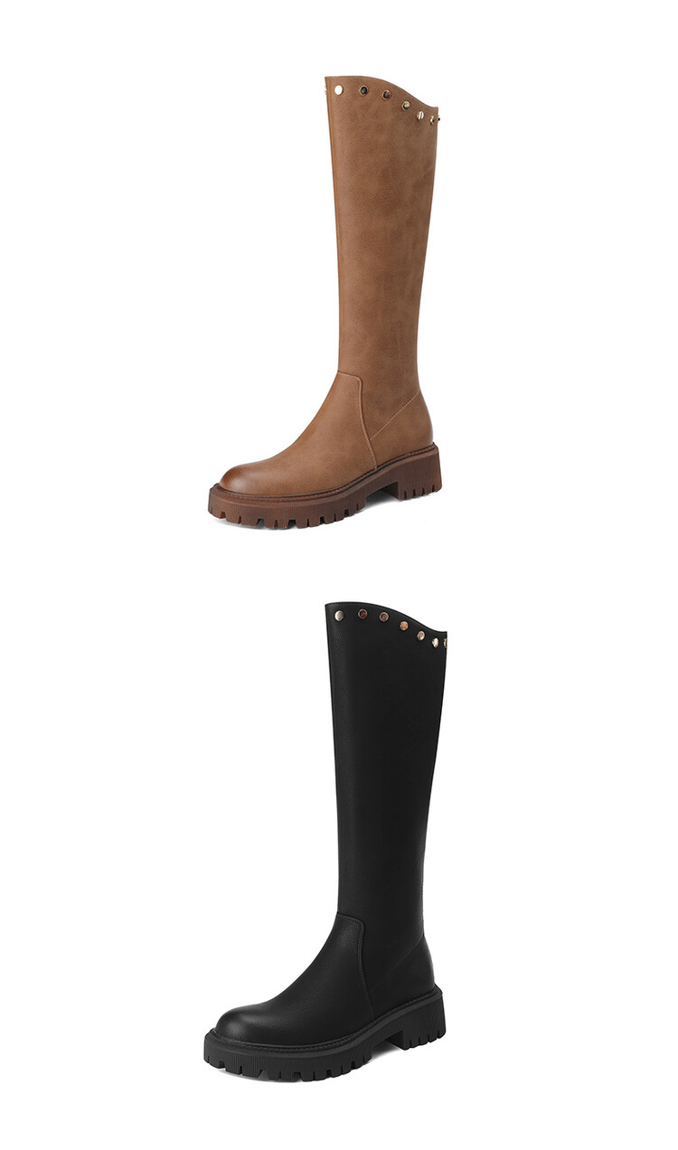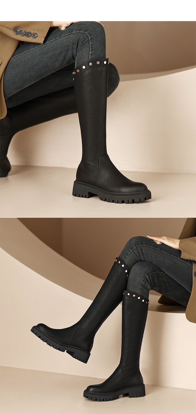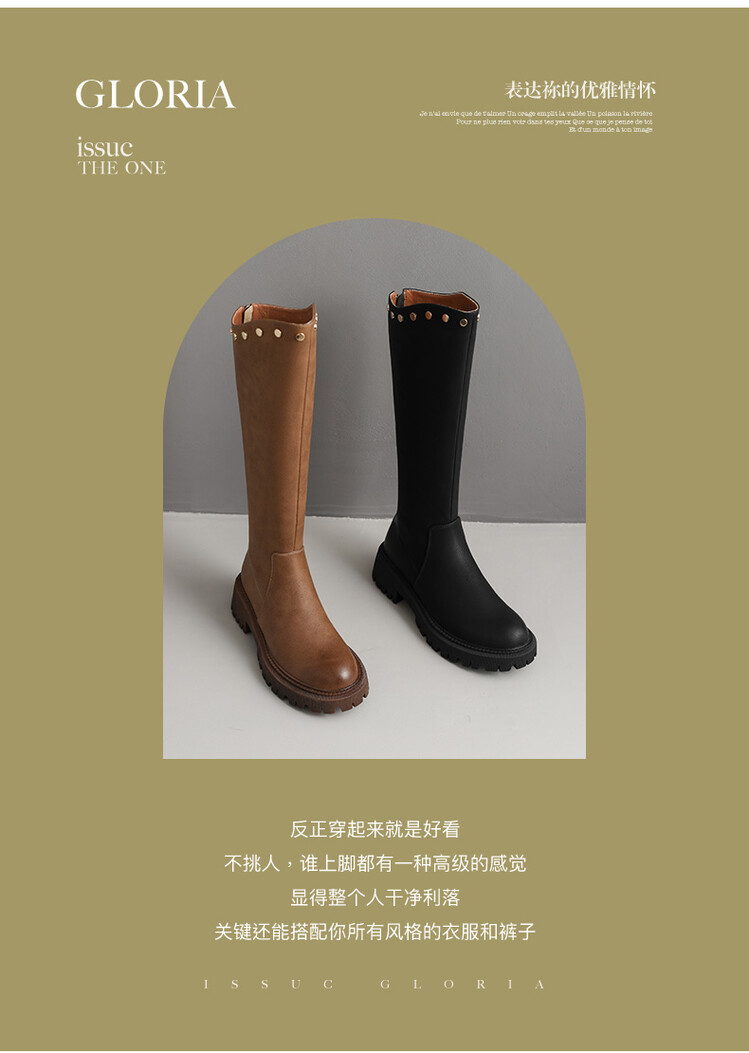 Ech&yolo气质牛皮厚底甜辣骑士长靴HBP-1916