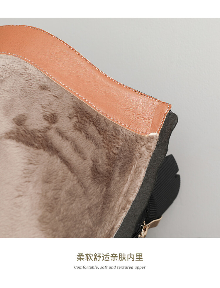 Ech&yolo厚底头层羊皮拼接超好穿后拉链新款短靴HB-1289