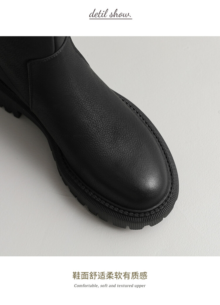 Echo&yolo简约粗跟圆头纯色气质款切尔西短靴HBP-5648