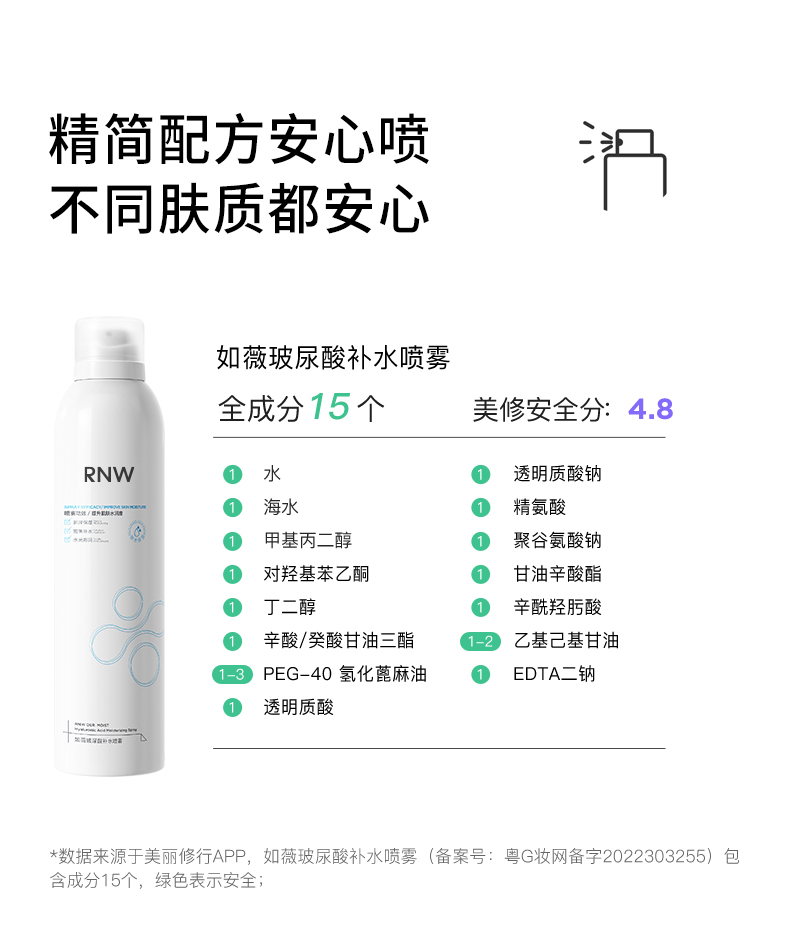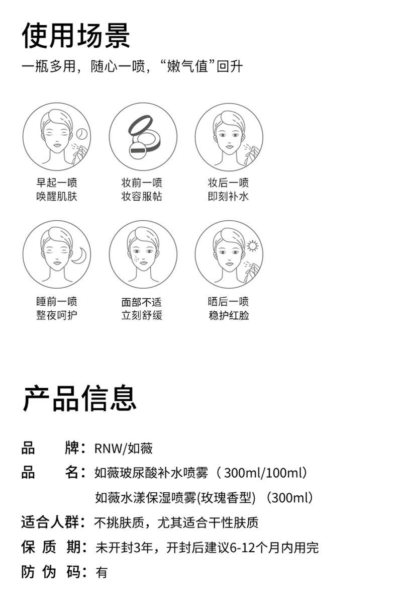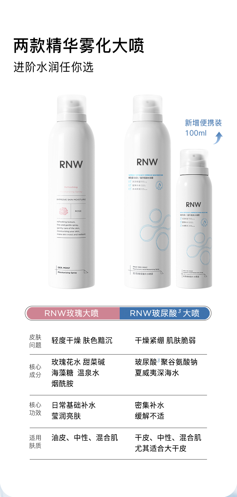 RNW/如薇 玫瑰温泉水舒养喷雾/玻尿酸补水喷雾【压力罐多收运费会退款】