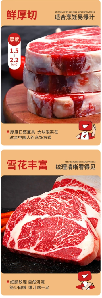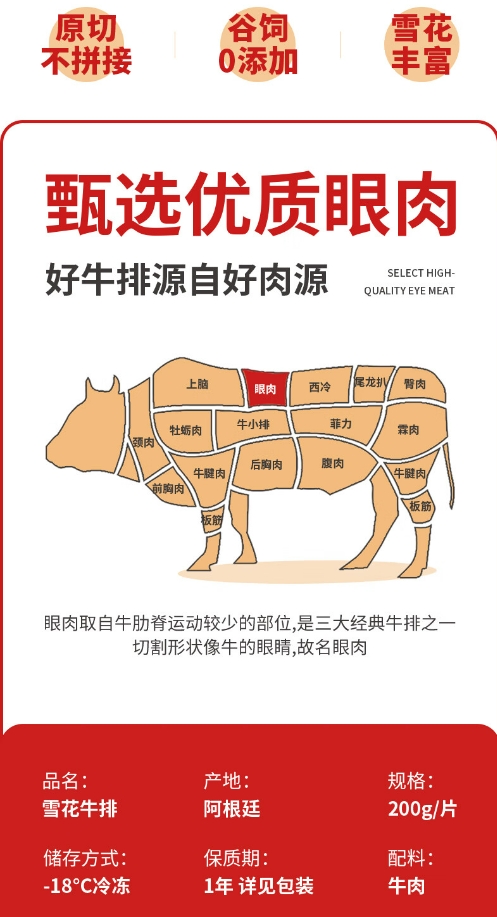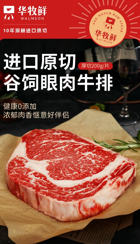 【华牧鲜】澳洲和牛M7眼肉200g*3 进口谷饲原切牛排套餐 厚切雪花牛肉 生鲜牛排礼盒
