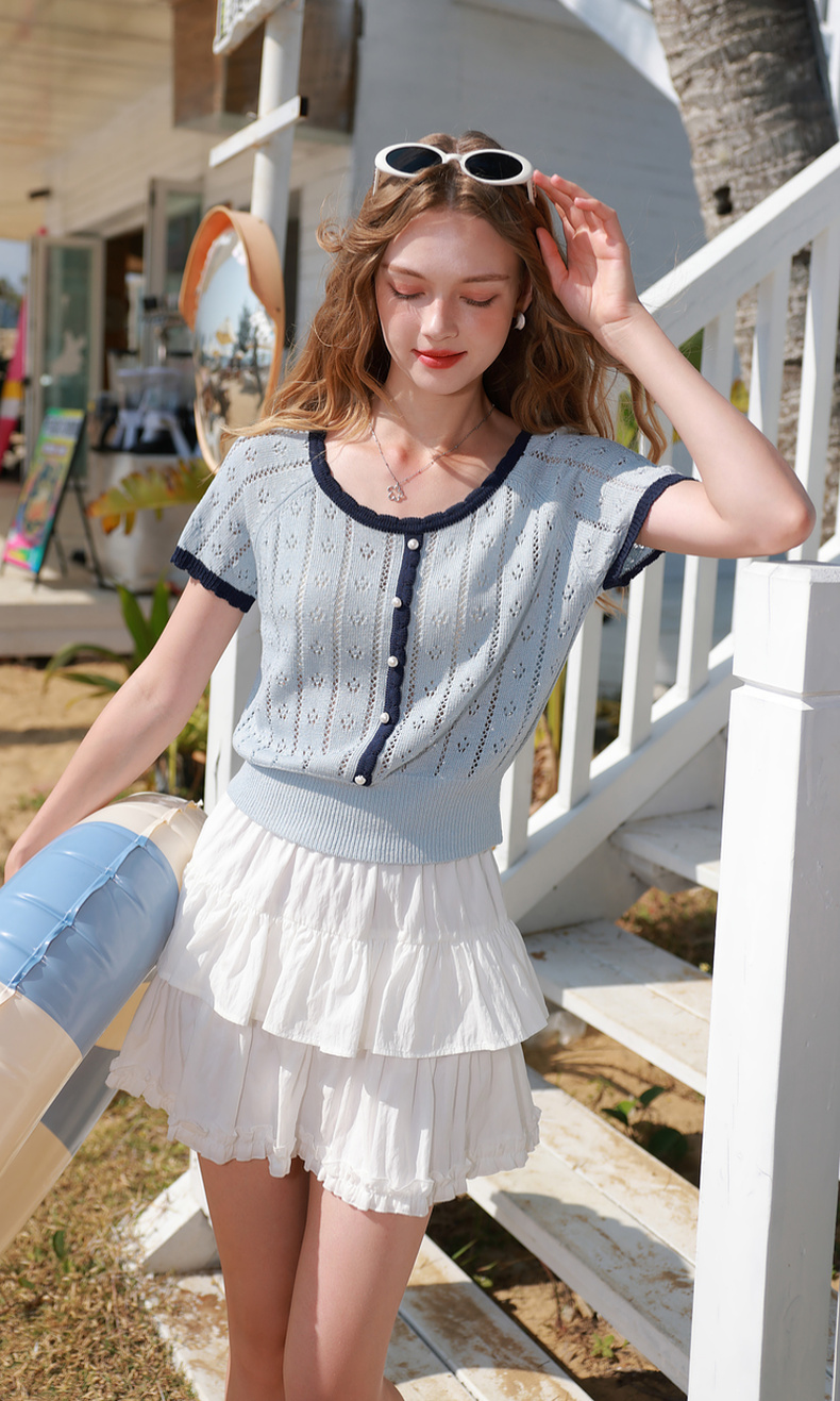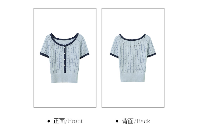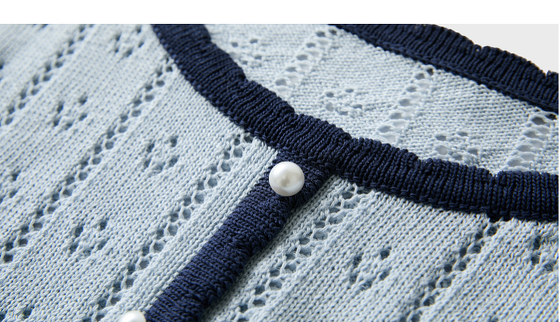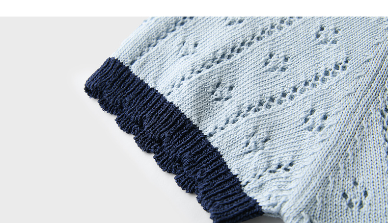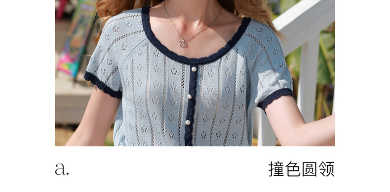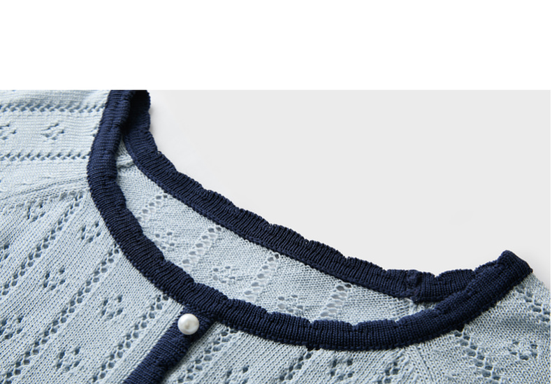 【莱赛尔】三彩2026春季新款撞色圆领镂空针织毛衣套头毛衫修身M