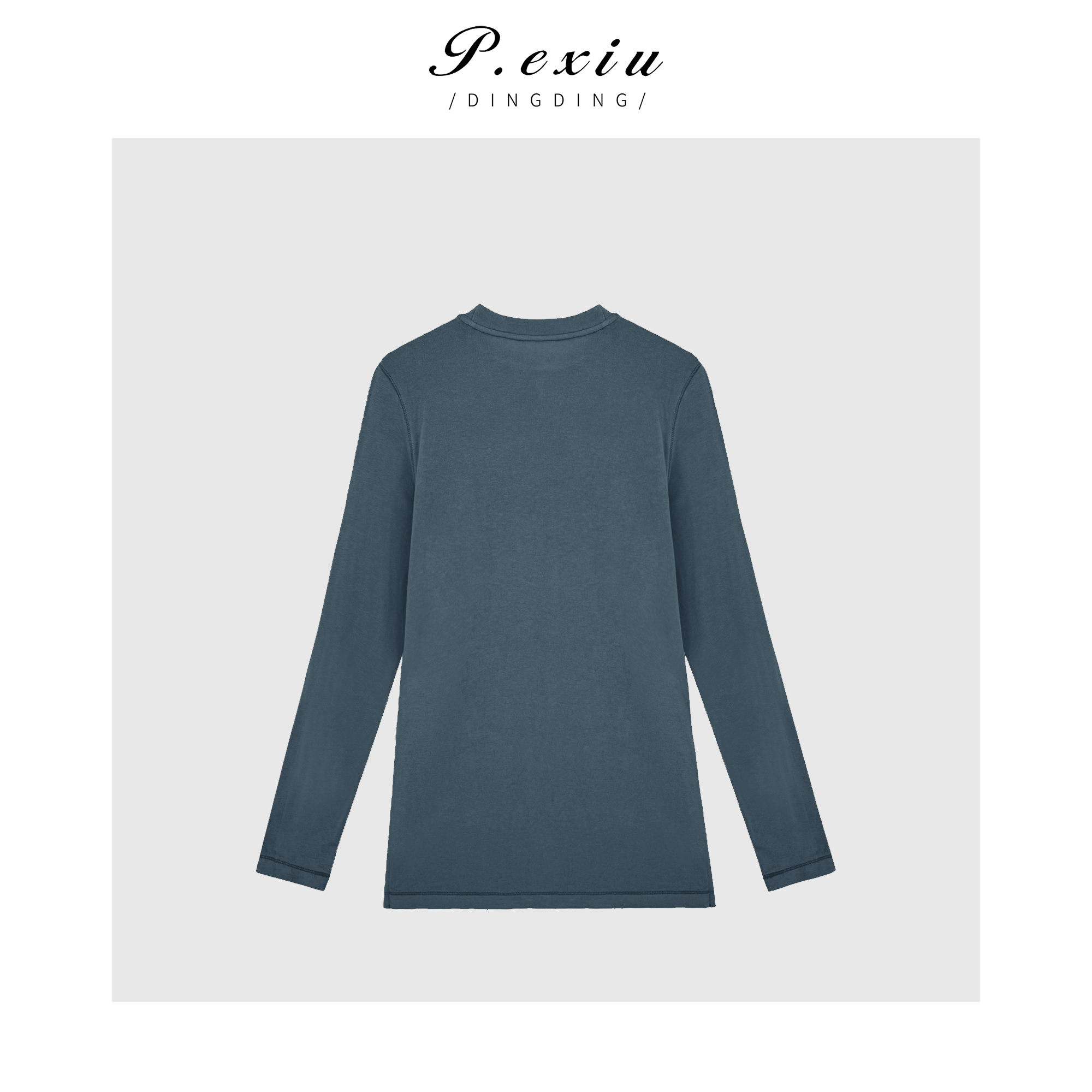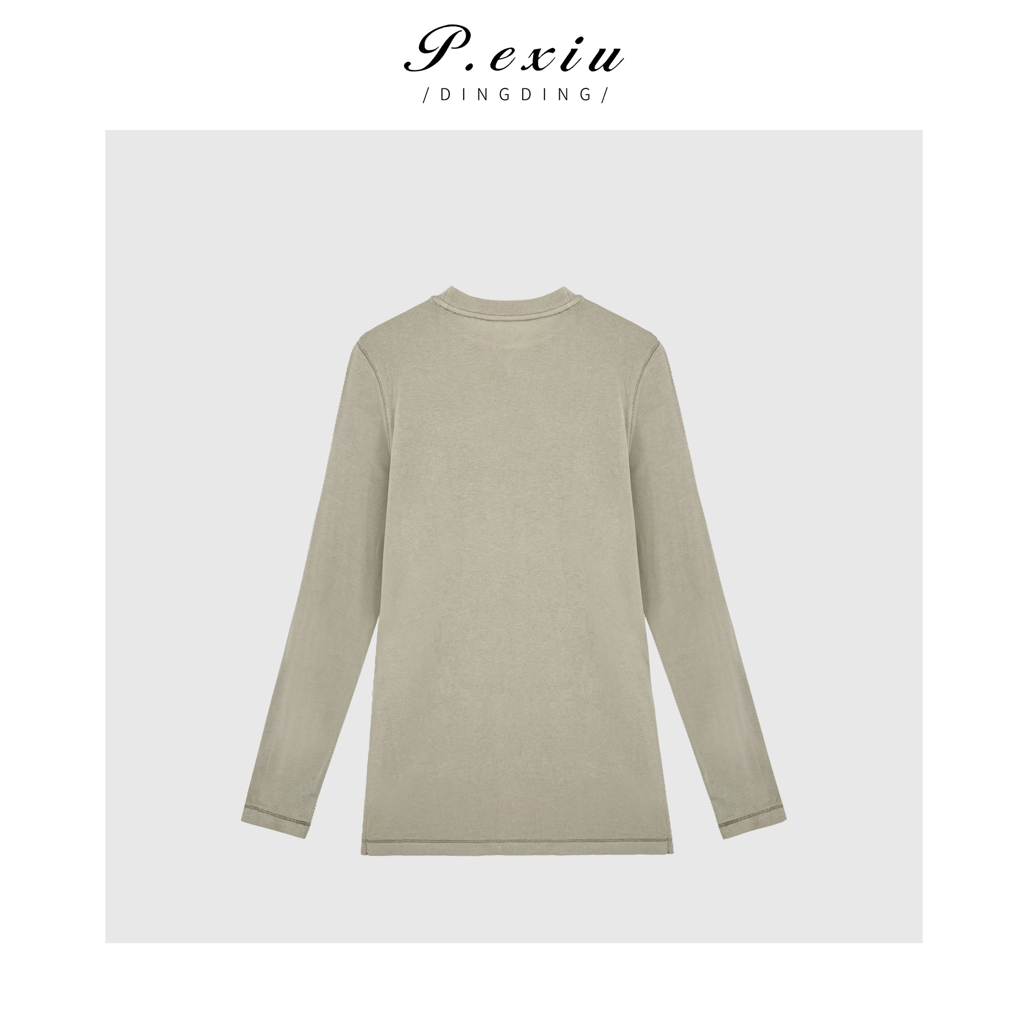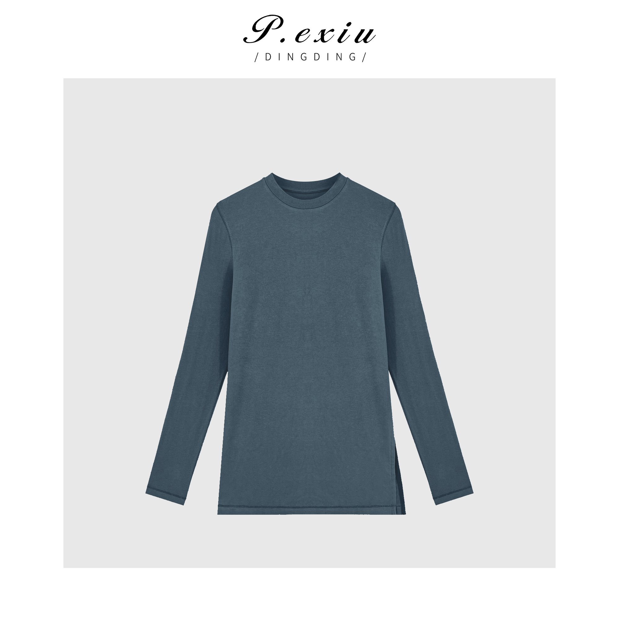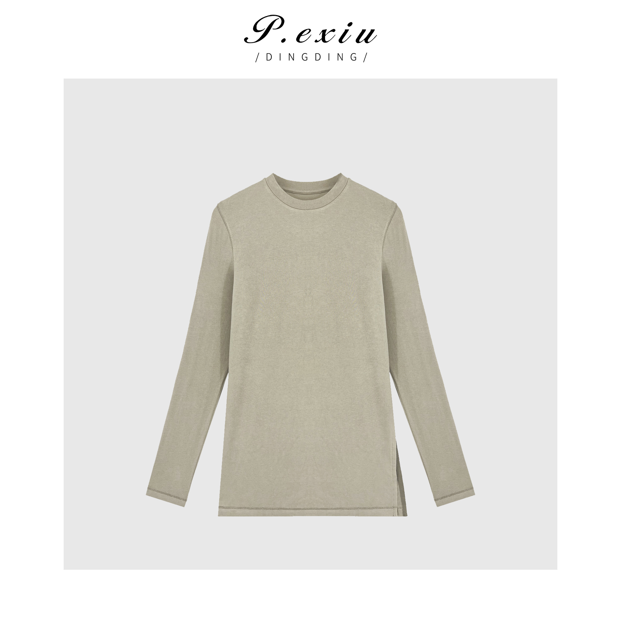 04-4潘依绣丁丁宠粉【至简美学】秋冬下摆侧开叉圆领宽松百搭长袖T恤 W-61726