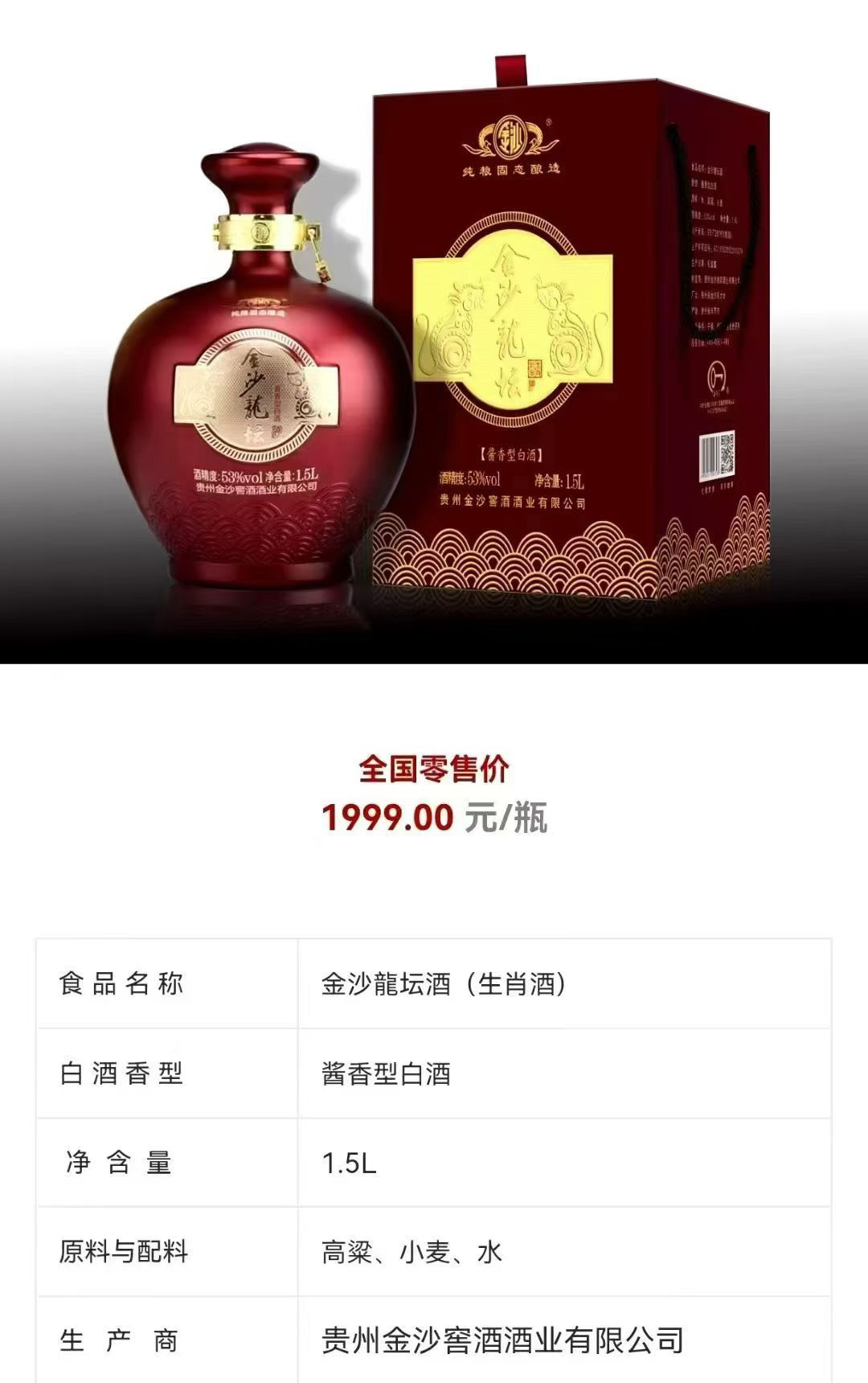 【年份大坛】2020年 金沙龙坛 酱香型白酒 53度 1.5L*1坛 1.5L*2坛原箱