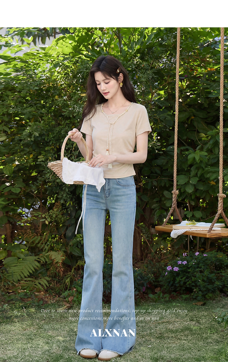 鹿向南「情深缘浅」修身微喇牛仔长裤女春新款时尚百搭紧身休闲裤