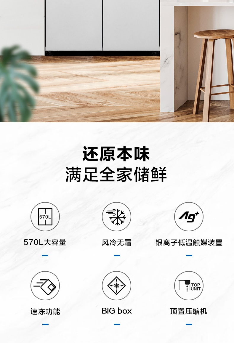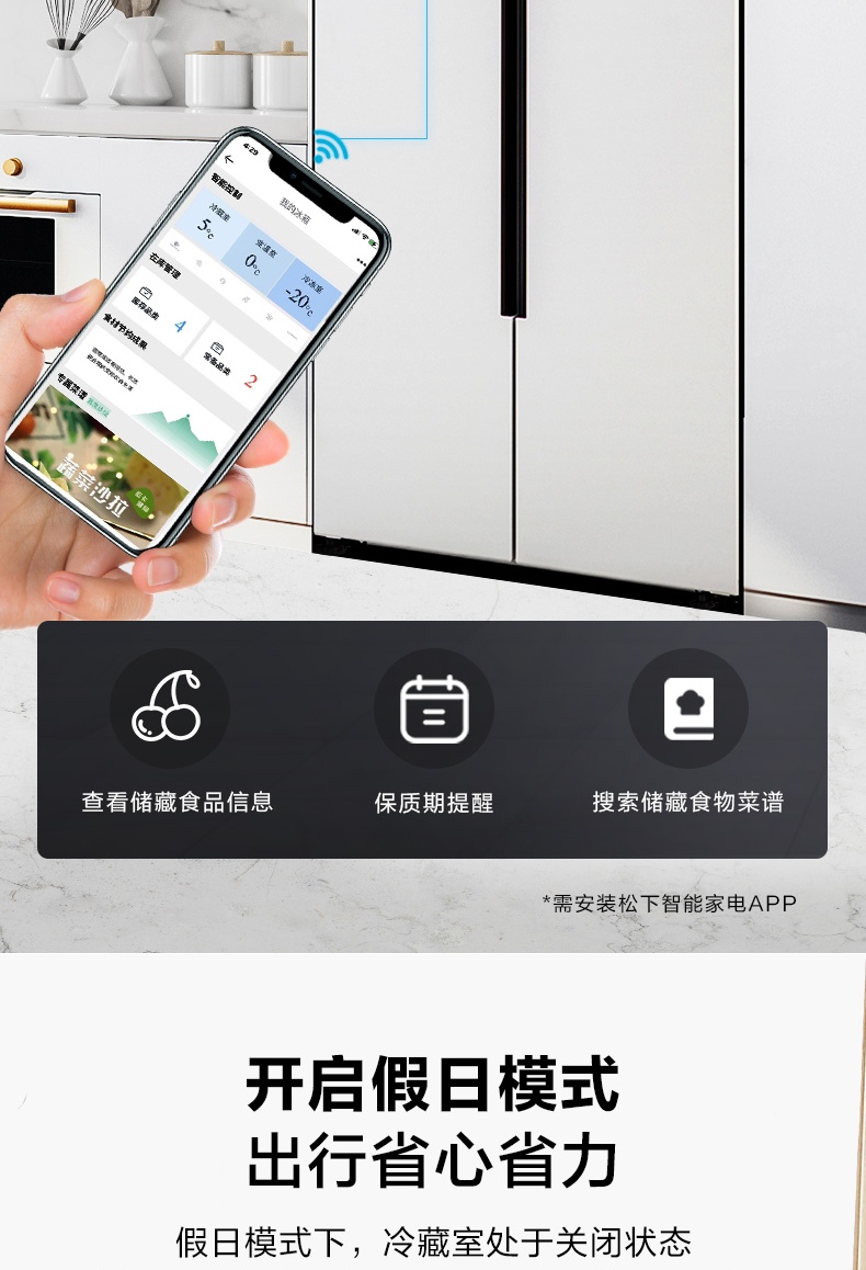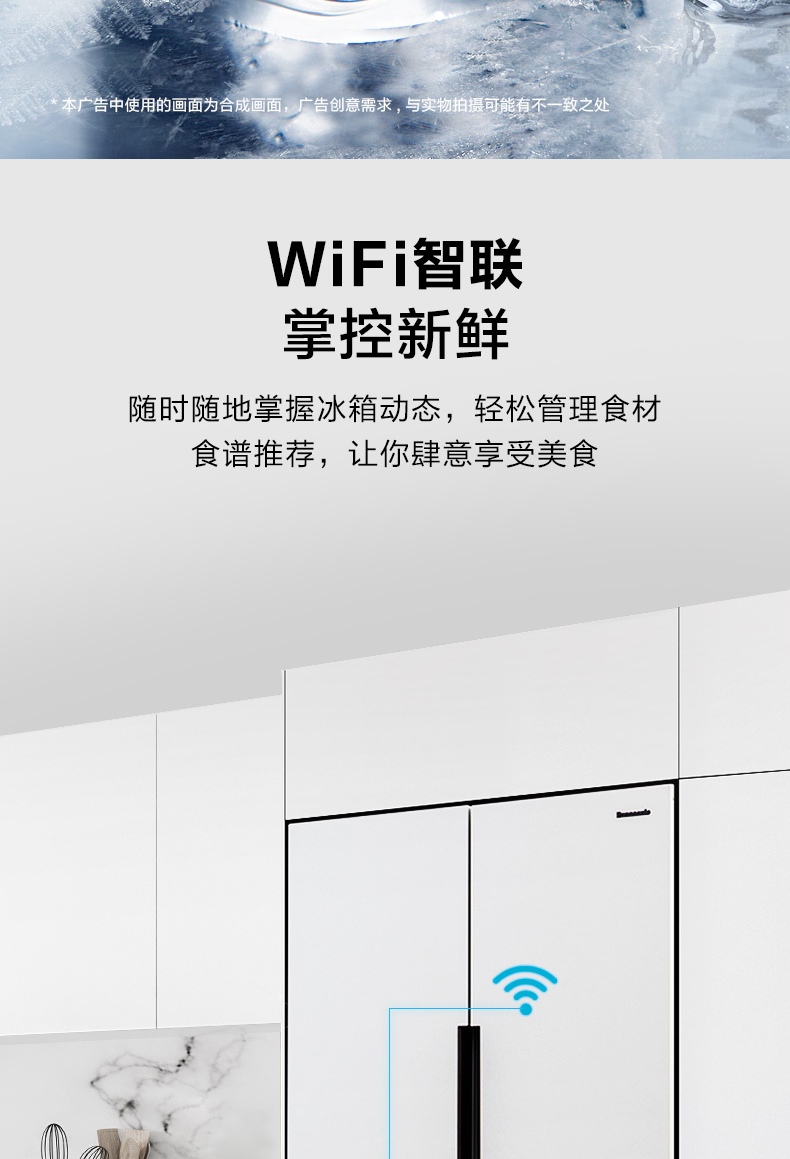 松下(Panasonic)570升对开门冰箱 顶置压缩银离子kang菌除异味风冷无霜超薄大容量双开门冰箱NR-B581WM-W