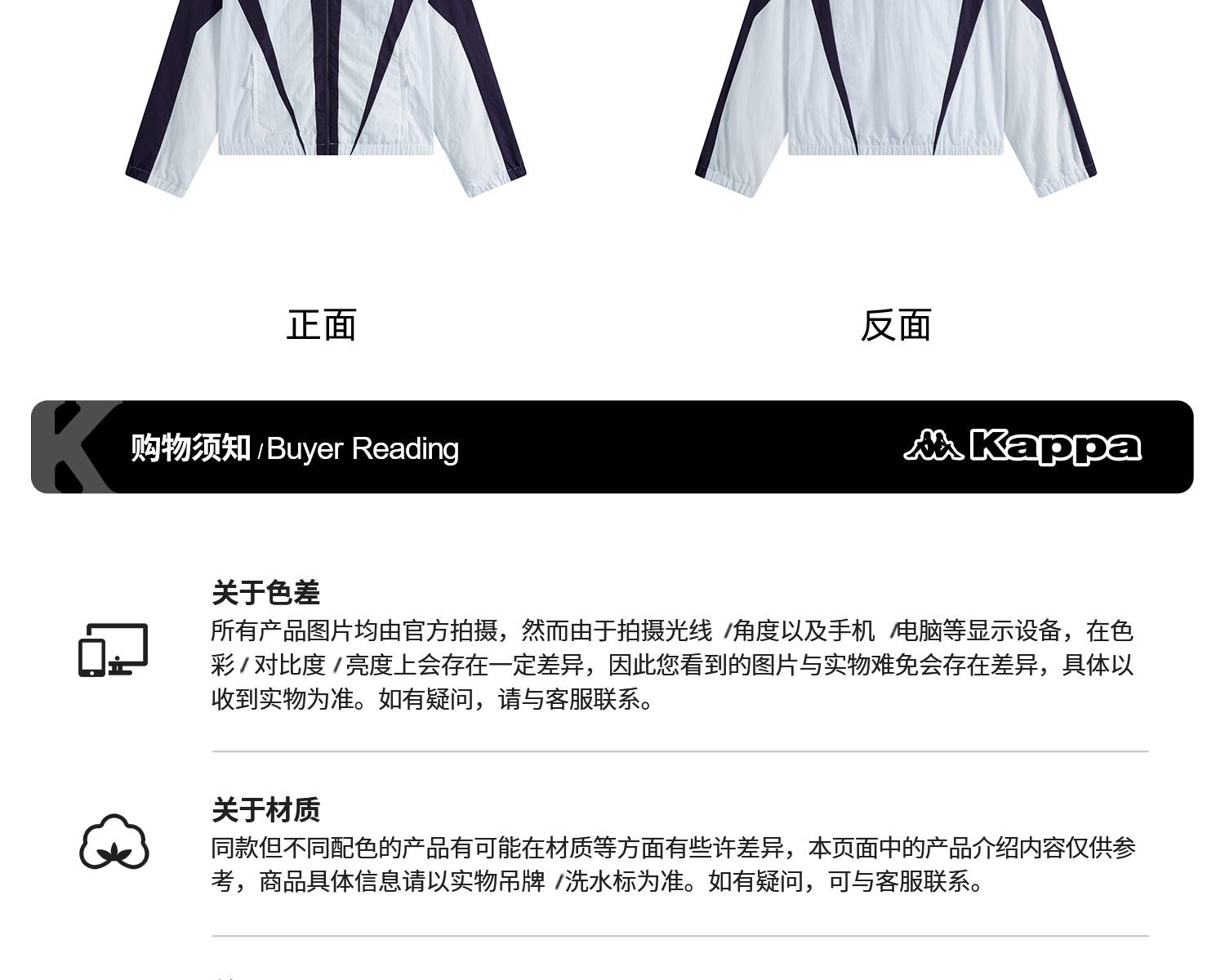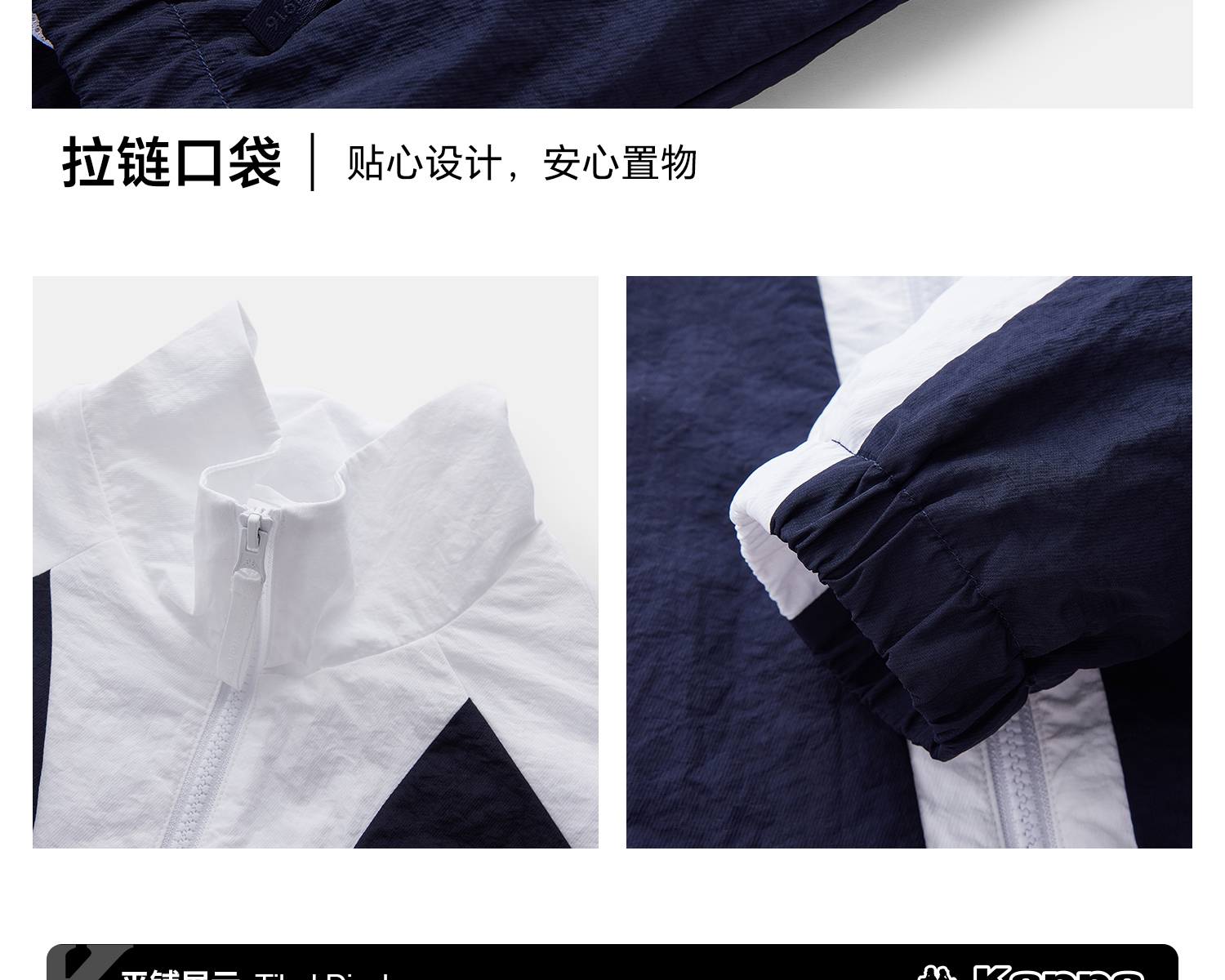 Kappa卡帕背靠背运动外套男春季新款户外休闲夹克拼接立领上衣女KPCJBJJ95