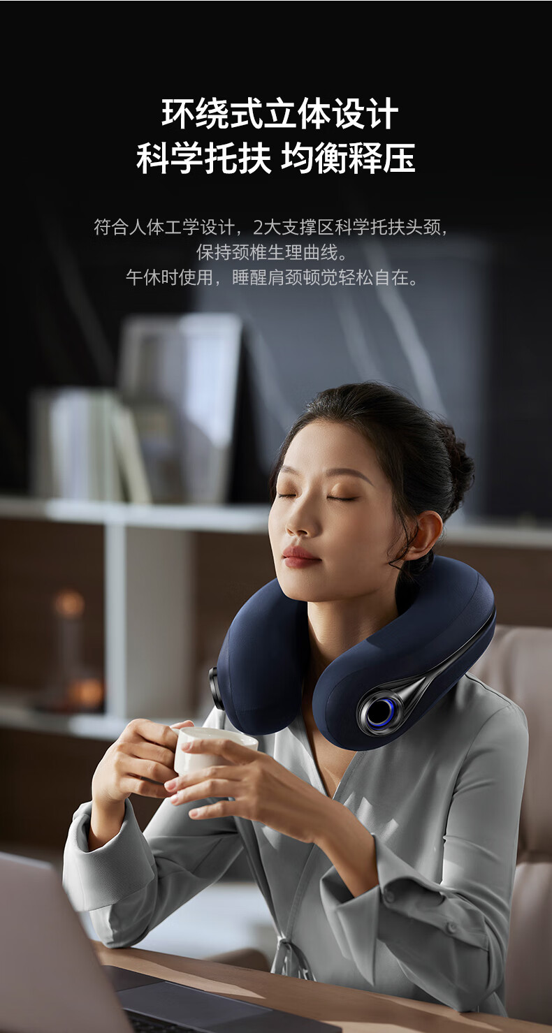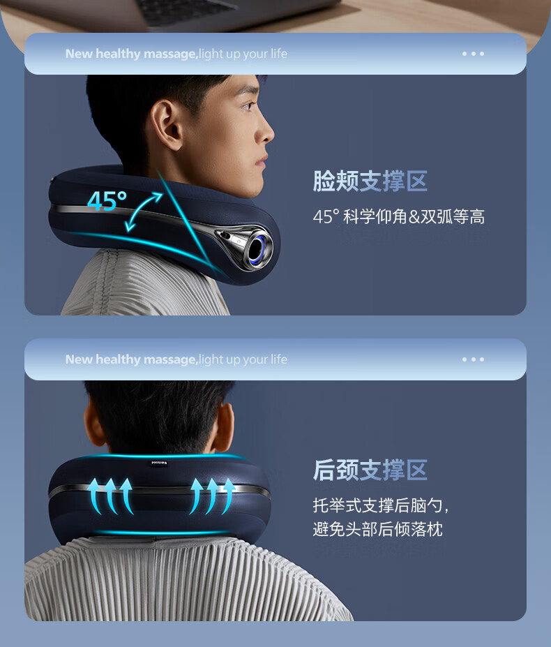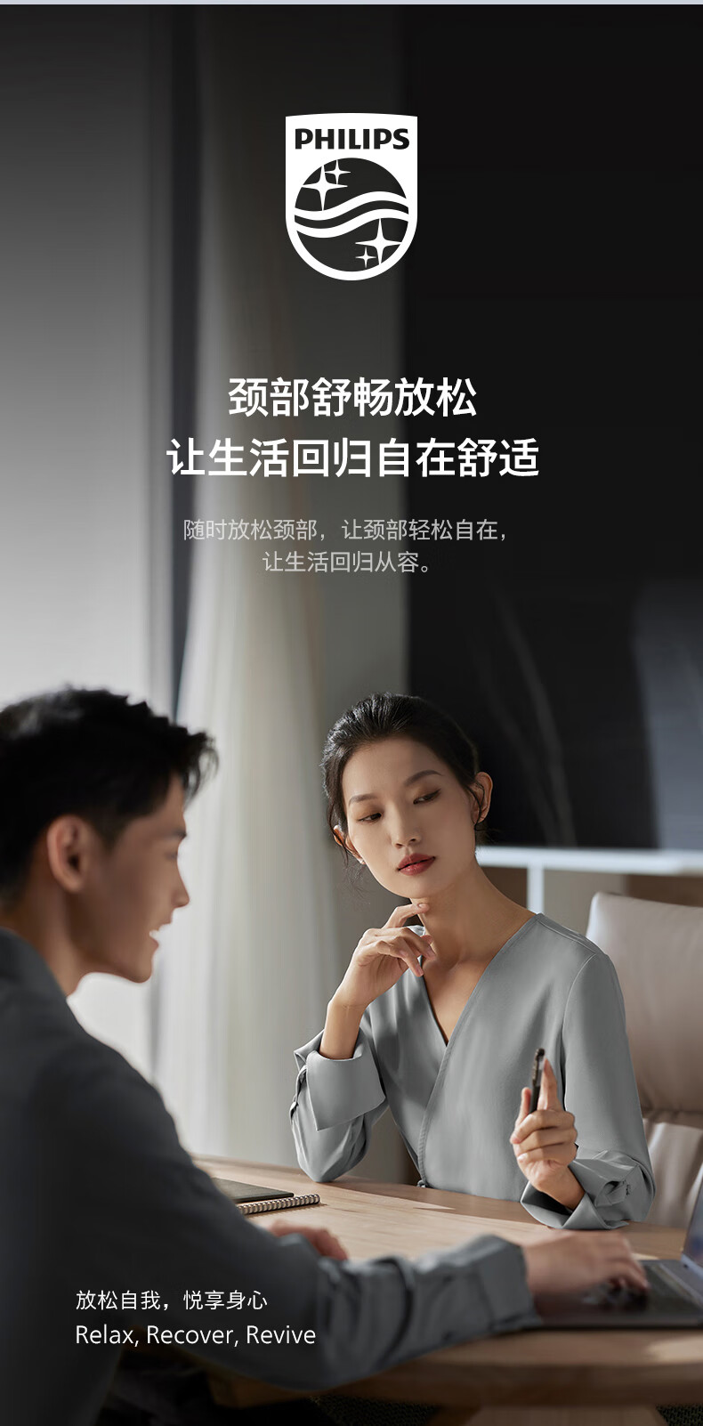 飞利浦(PHILIPS)颈椎按摩器3D伸缩按摩头物理揉捏颈部按摩仪恒温热敷按摩枕 年会礼品生日礼物PPM7101N