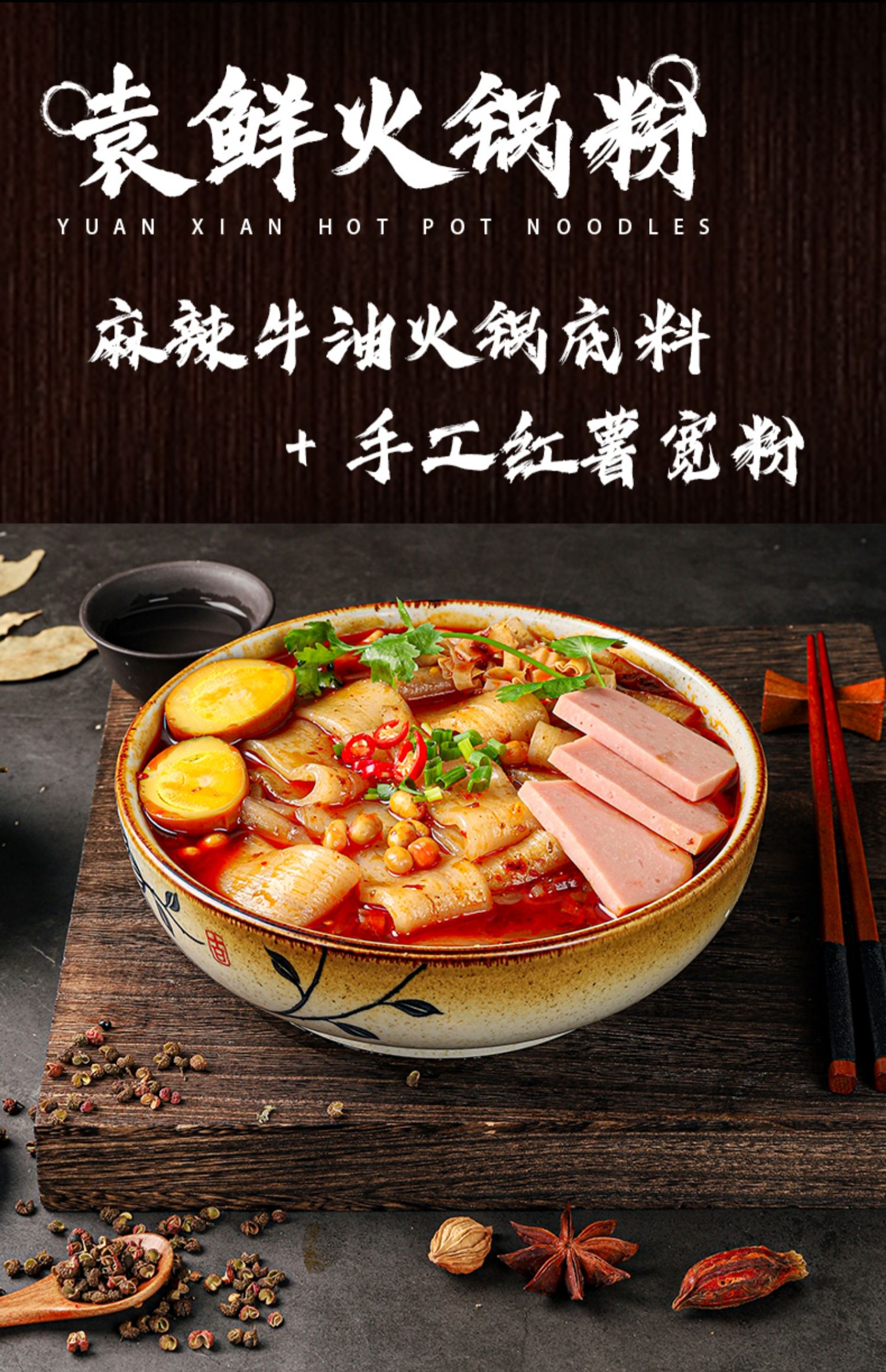 严选 | 袁鲜火锅粉宽粉266g*5袋 成都牛油火锅底料 调料速食川粉红薯粉 宿舍免煮