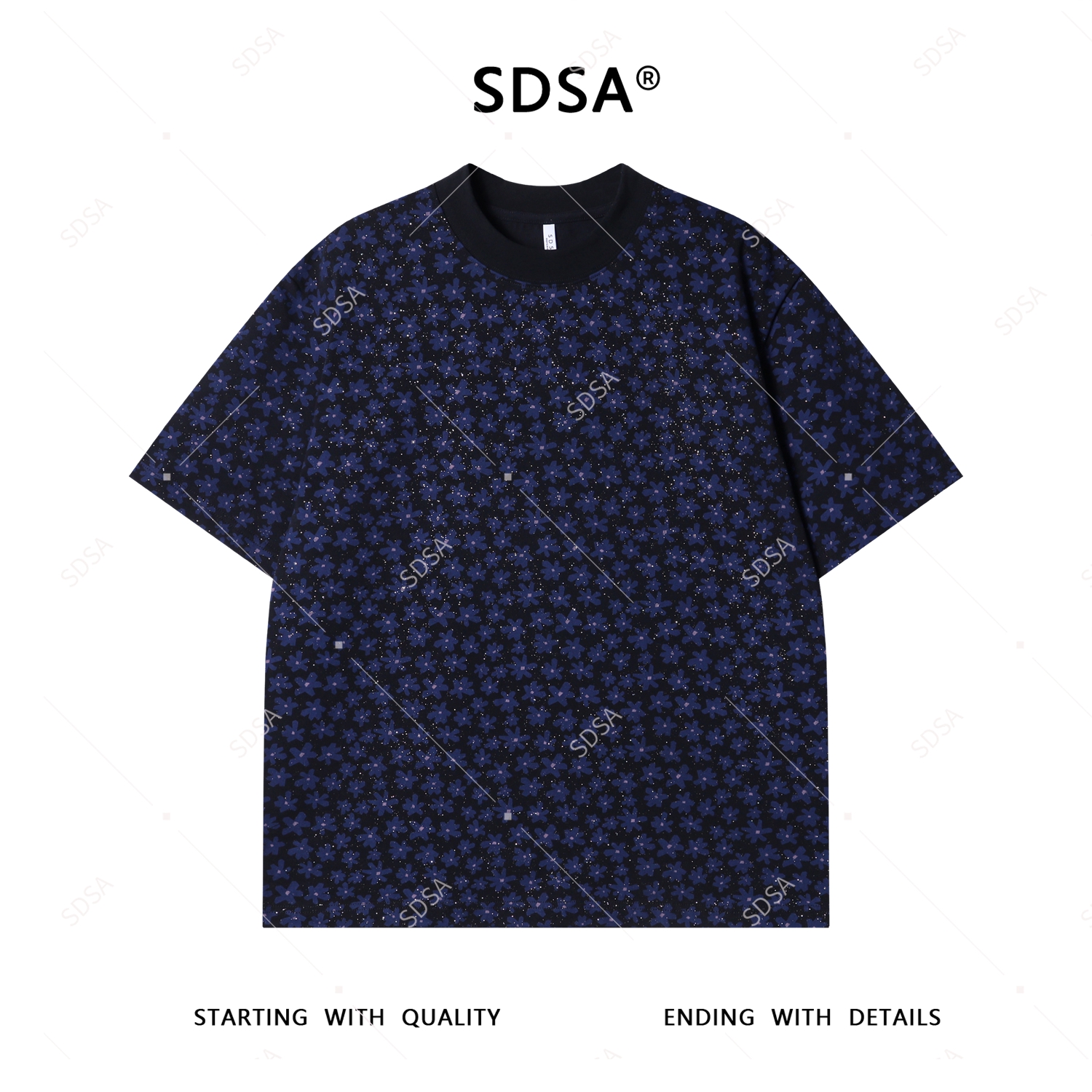 SDSA夏季高级感新款男士满天星撞色满印花卉短袖T恤时尚百搭上衣