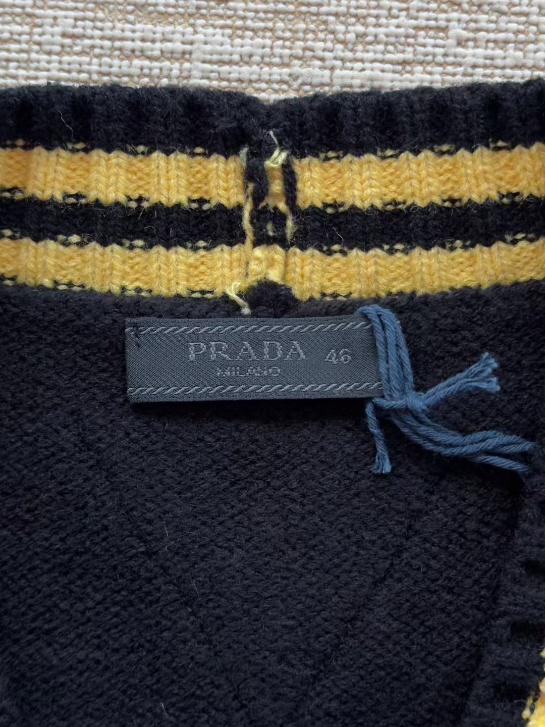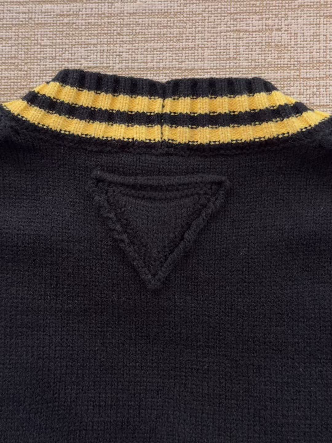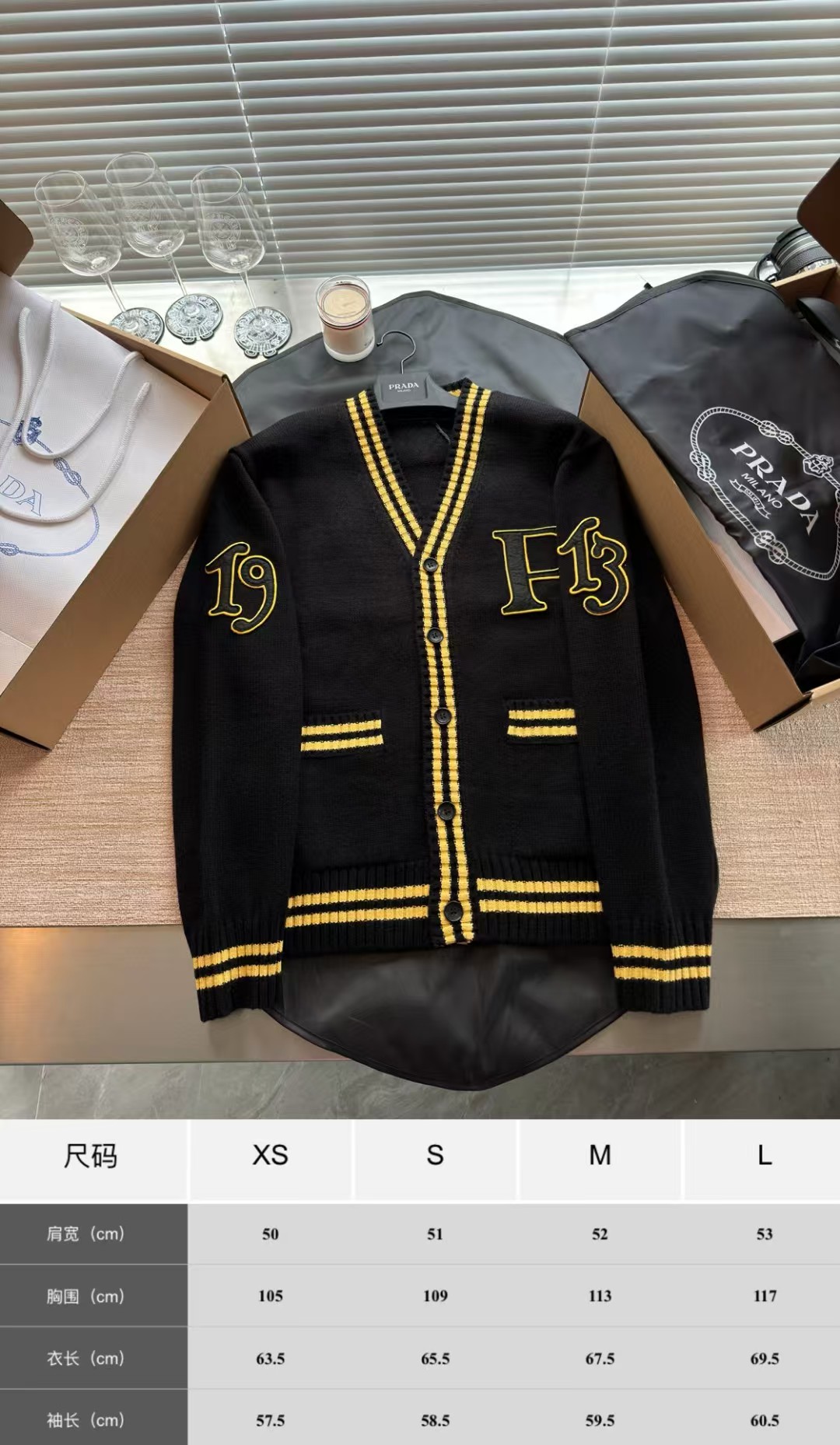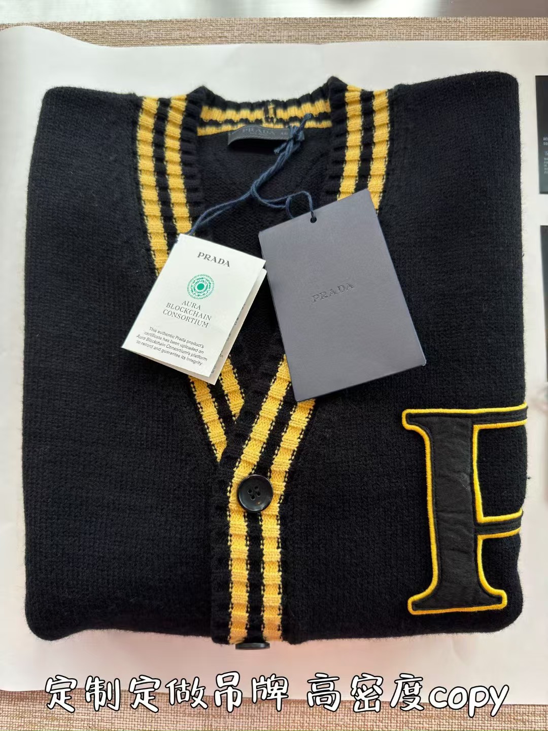 PRADA 1913黄边字母开衫 上身太绝了吧🤫整件衣服29300购买ZP拆解打造,定织美利奴纯种羊毛面料,全身多个刺绣字母章仔开模定制,开模定制牛角扣 真正做到1:1copy 闭眼入 码数:XS S M L