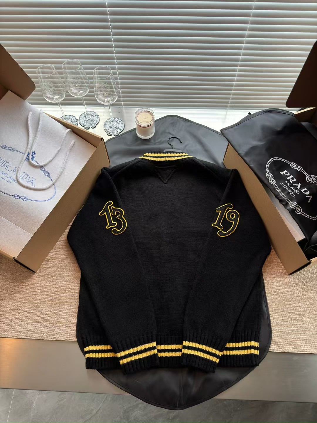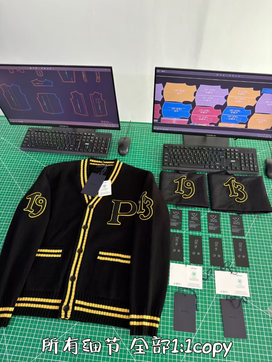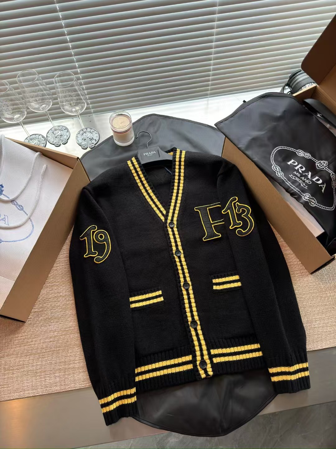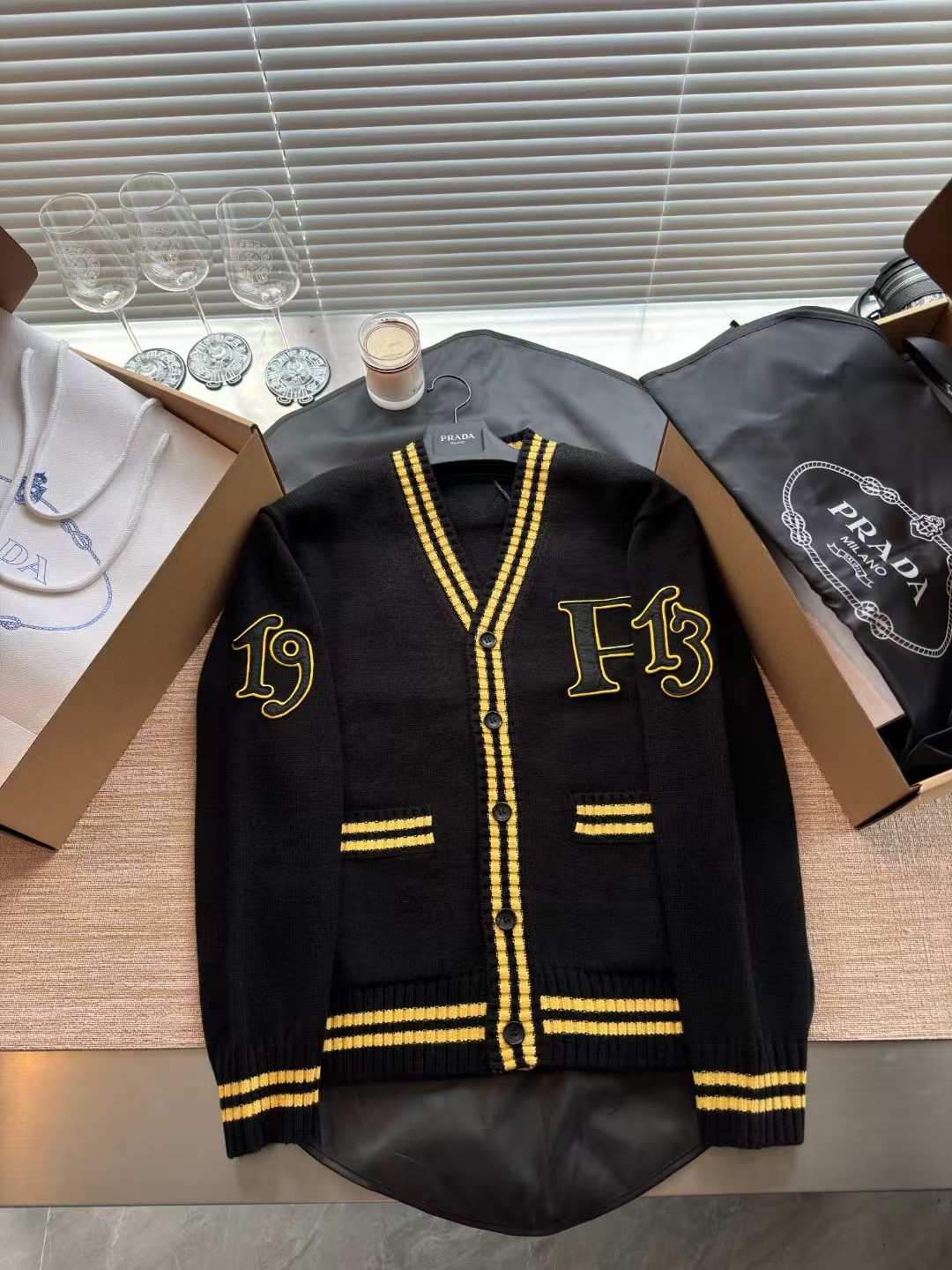 PRADA 1913黄边字母开衫 上身太绝了吧🤫整件衣服29300购买ZP拆解打造,定织美利奴纯种羊毛面料,全身多个刺绣字母章仔开模定制,开模定制牛角扣 真正做到1:1copy 闭眼入 码数:XS S M L