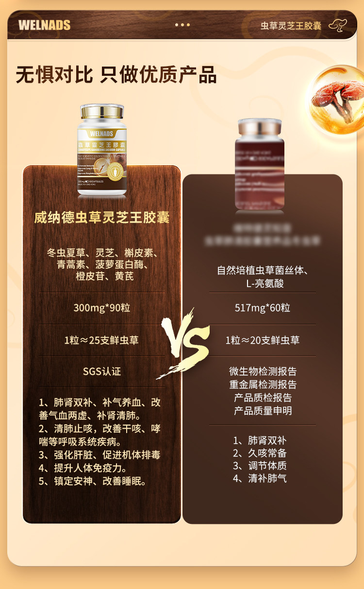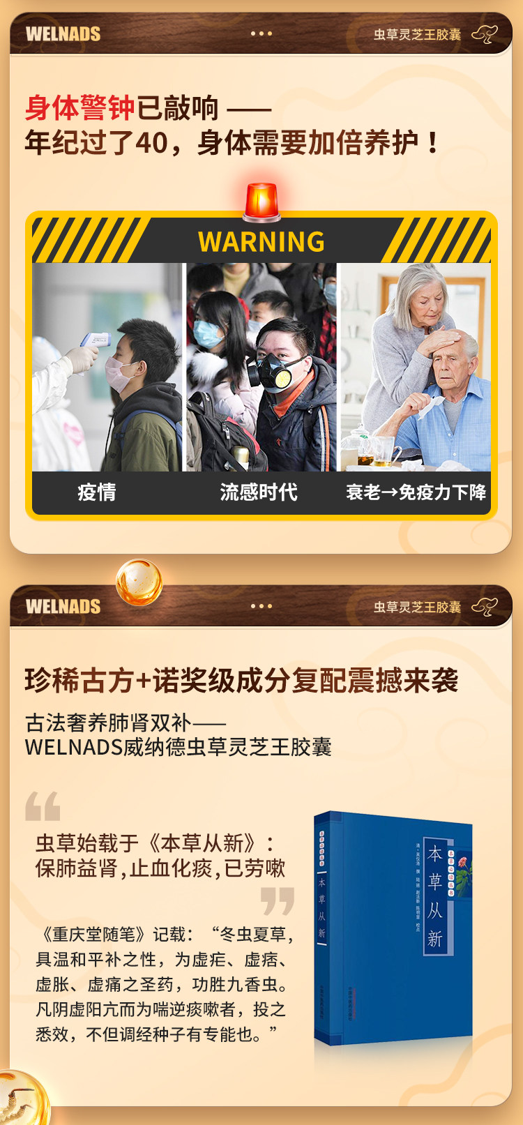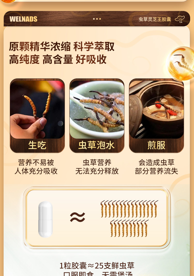 威纳德虫草灵芝王胶囊冬虫夏草滋补营养品香港原装正品90粒装