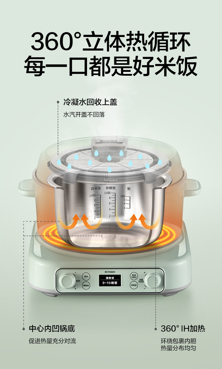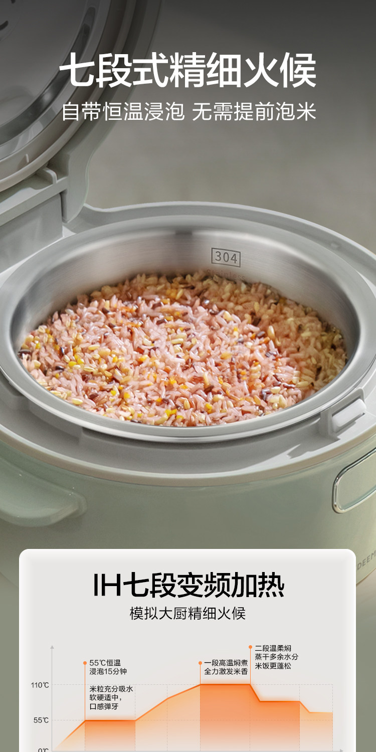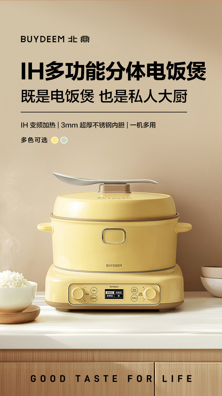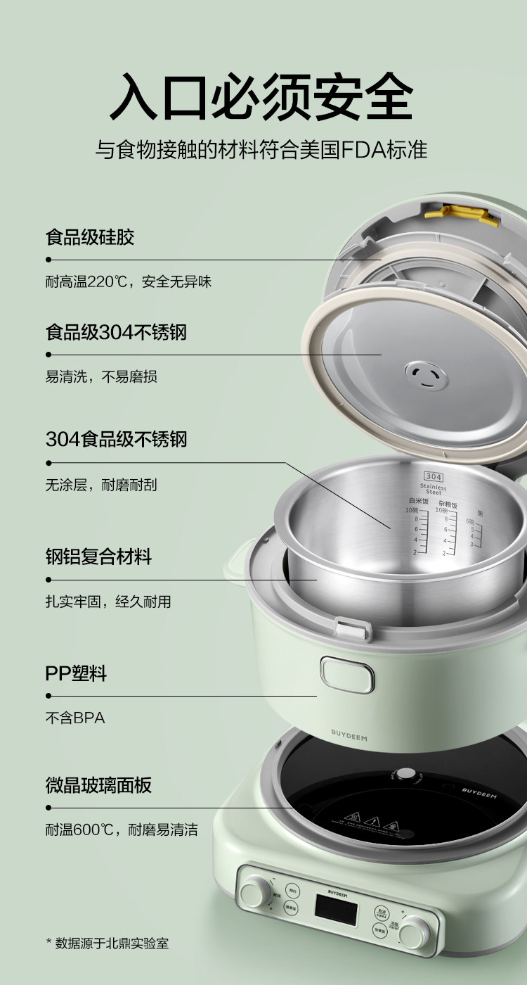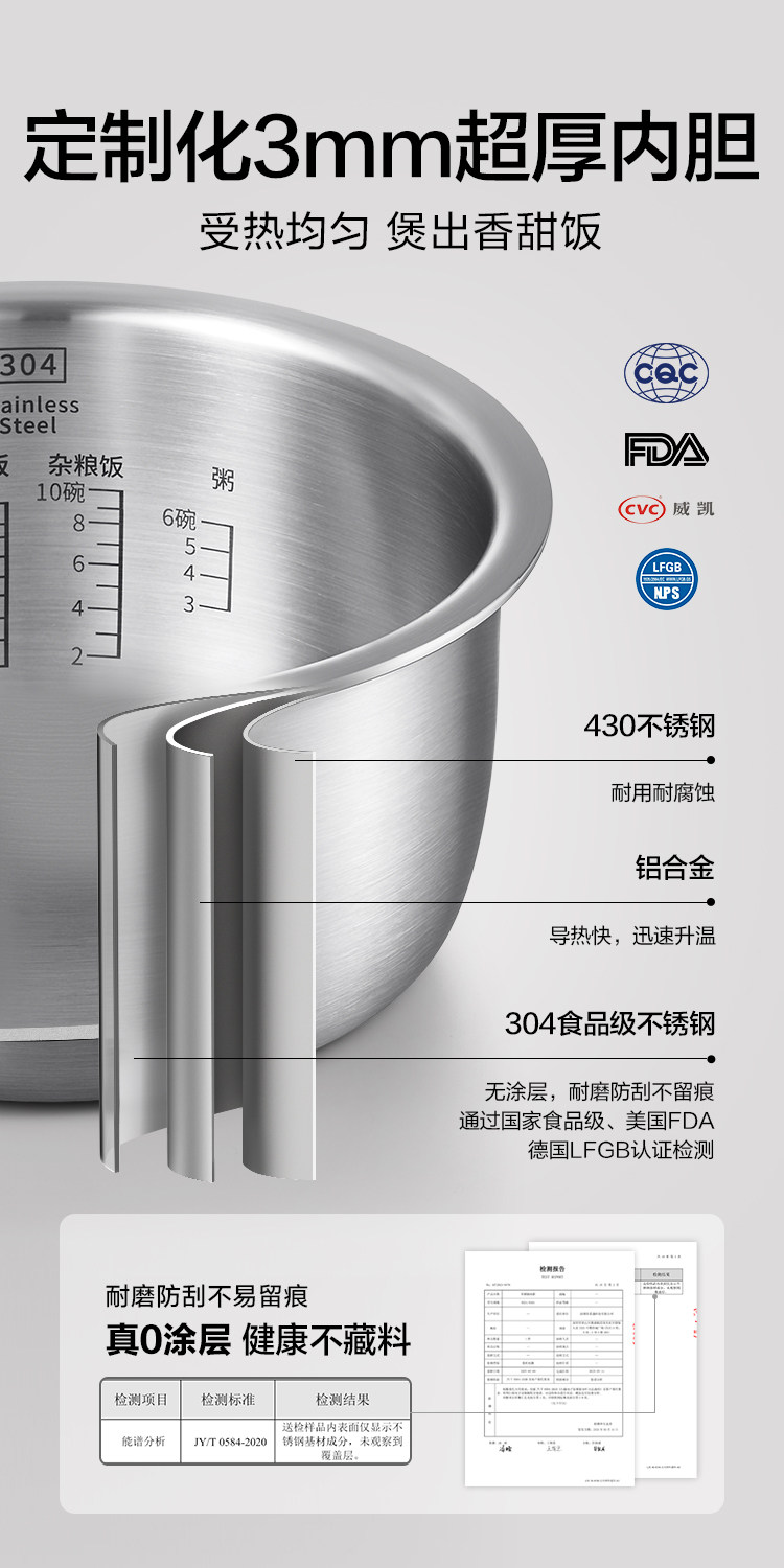 北鼎IH多功能分体电饭煲3L家用大容量电饭锅不锈钢1-4人0涂层