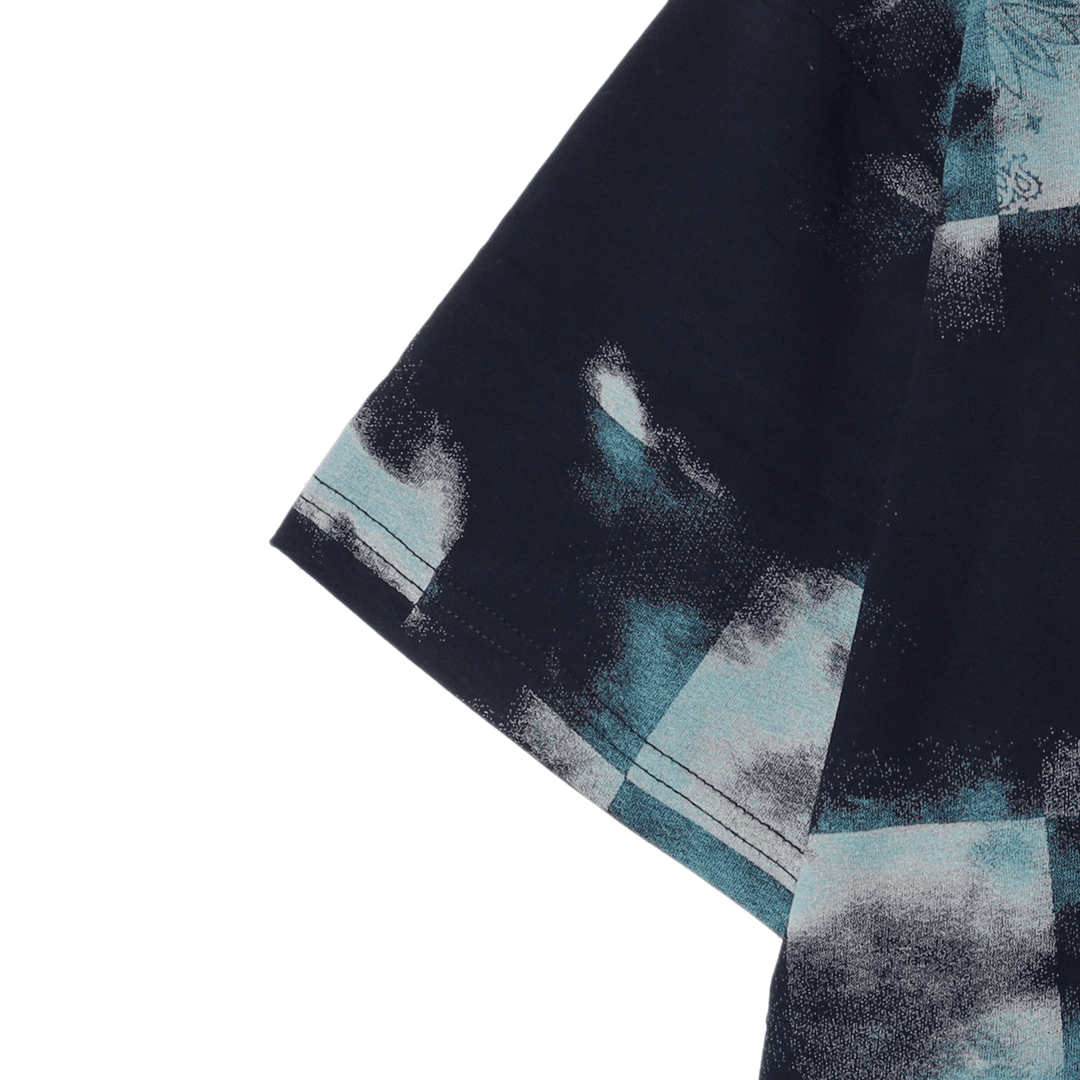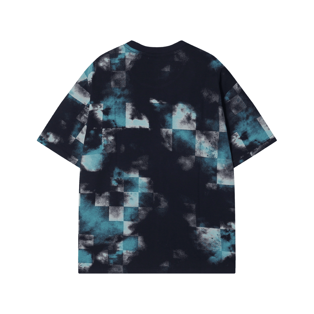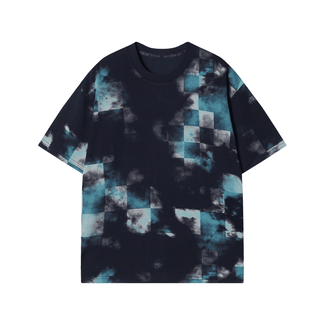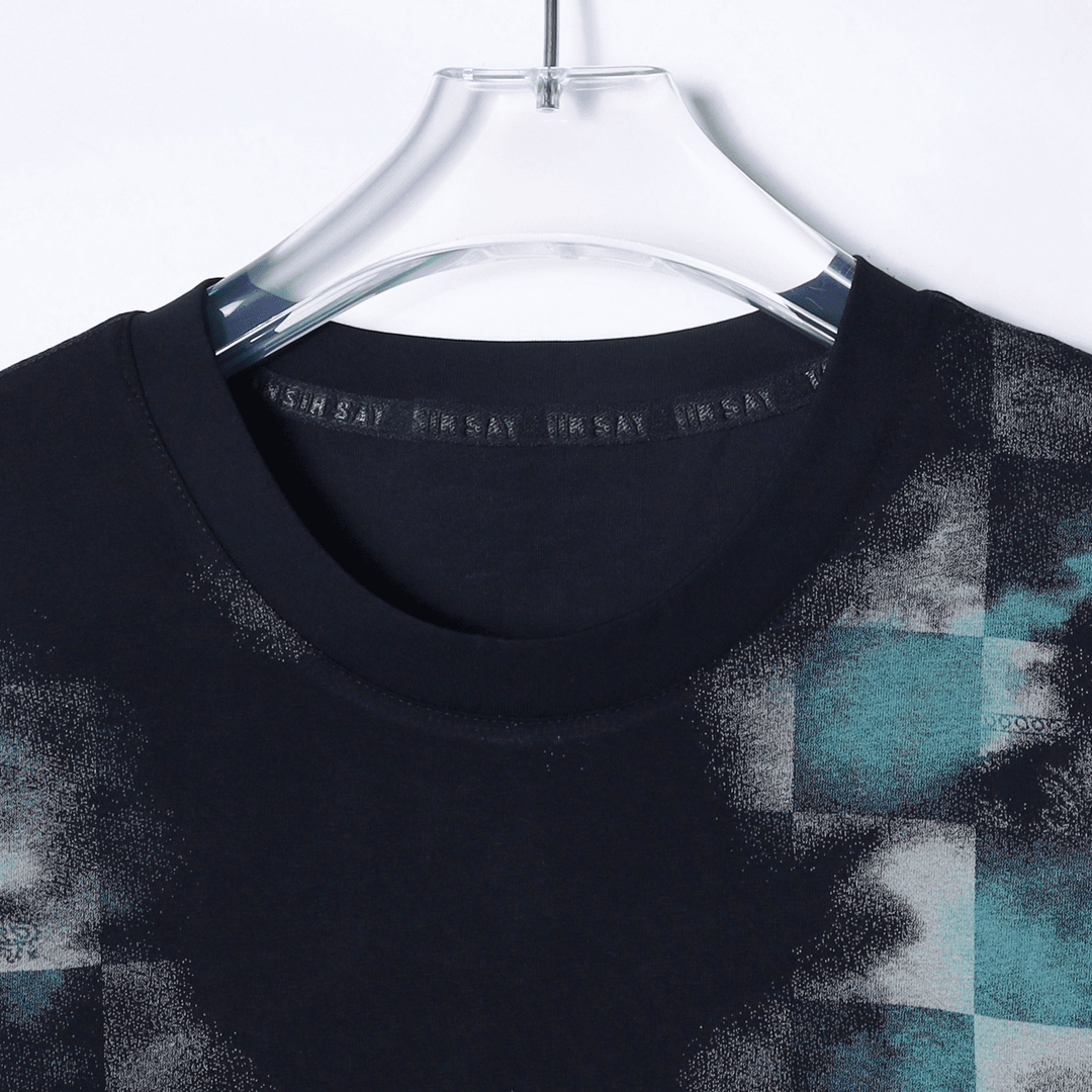 T1568夏季新款时尚做旧格子印染男士短袖百搭休闲上衣宽松小众T恤