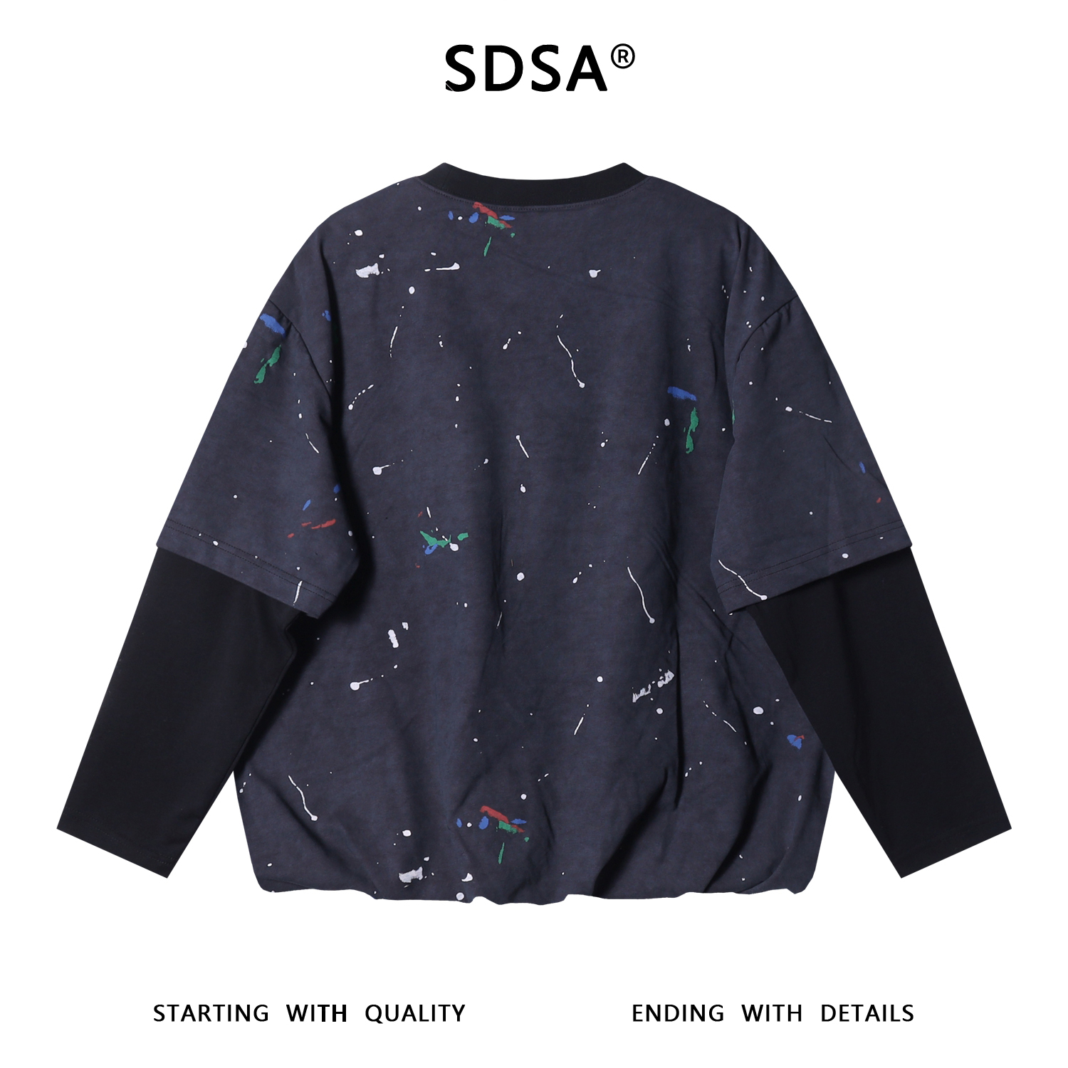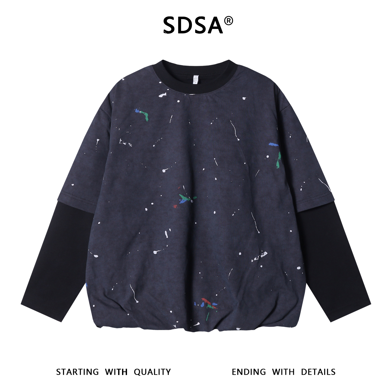 WY1187SDSA男士秋冬新款痞帅男装时尚泼墨圆领假两件长袖T恤宽松百搭