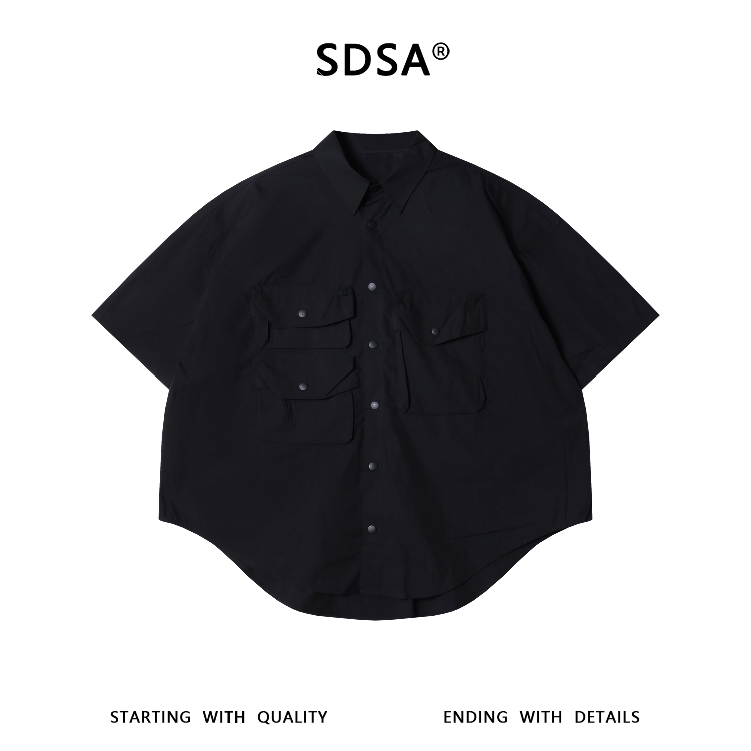 SDSA男装2026新款高贵轻奢复古工装立体多口袋弧形下摆短袖衬衫