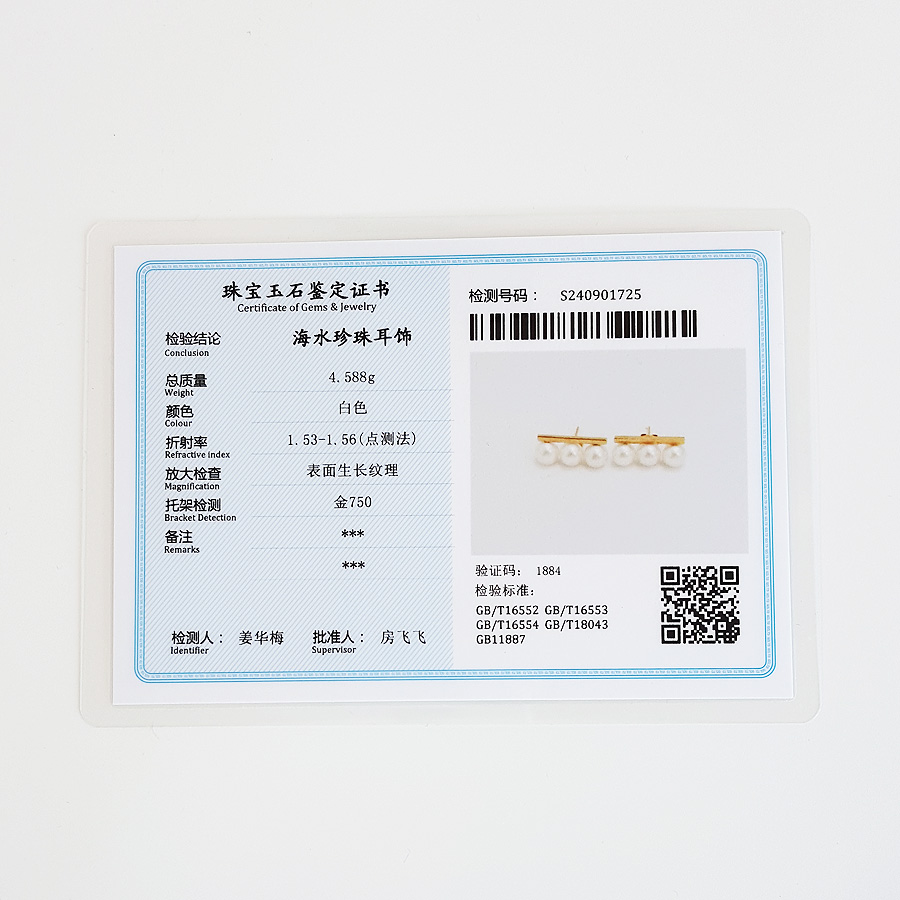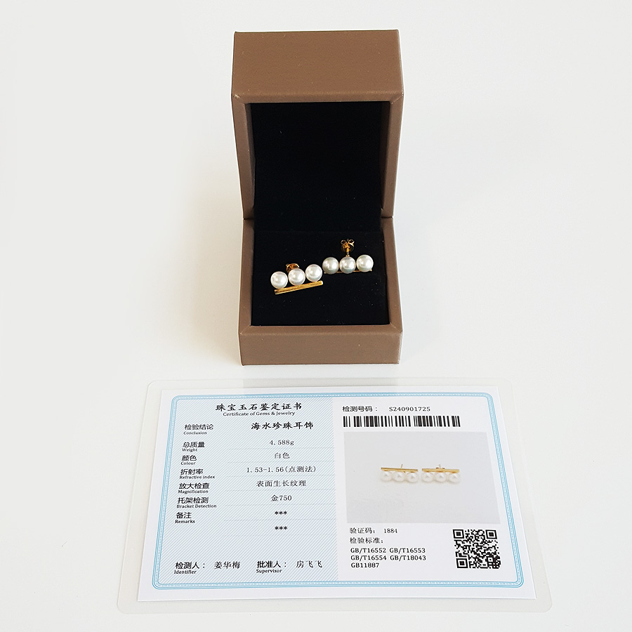 名称 | AU750黄金镶天然约6.3MM海水珍珠平衡木造型耳钉 |