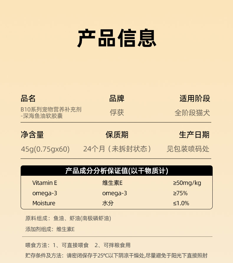 【俘获好礼】俘获G10深海鱼油胶囊omega3猫咪狗狗专用宠物磷虾高浓度防掉毛