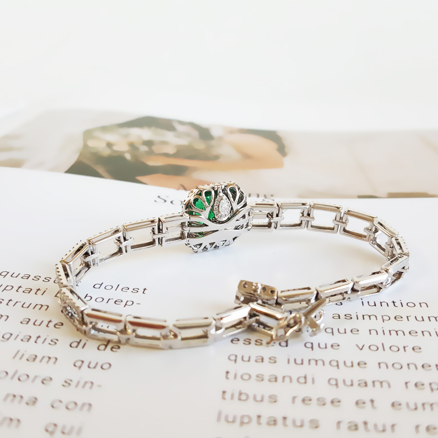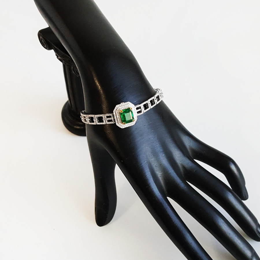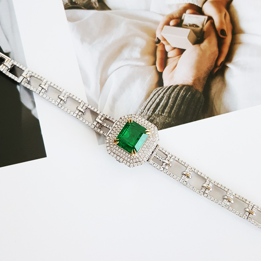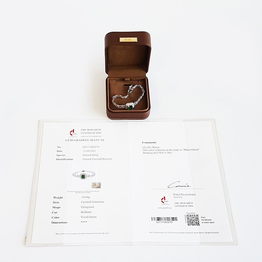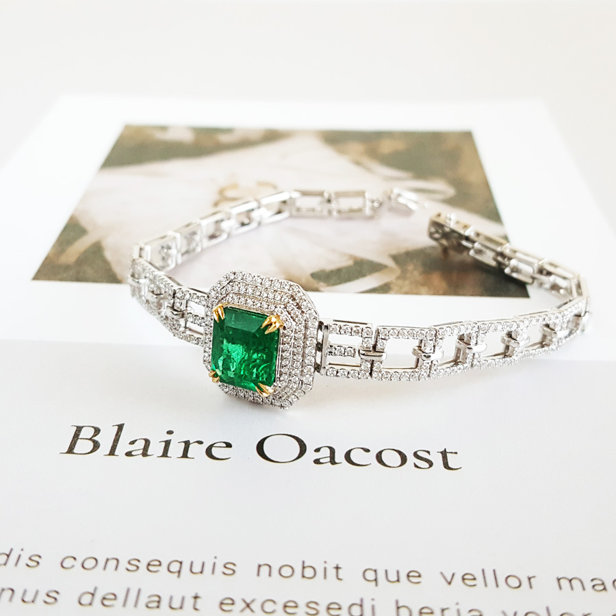 【天然正品】AU750收藏级白金豪镶钻镶天然3.28克拉微油木佐绿祖母绿手链、吊坠项链两用款吊坠:21.4*14.2*9.4MM / 手链:16.5CM女士011125JJ03