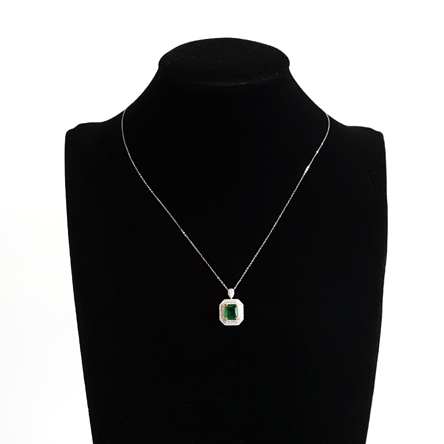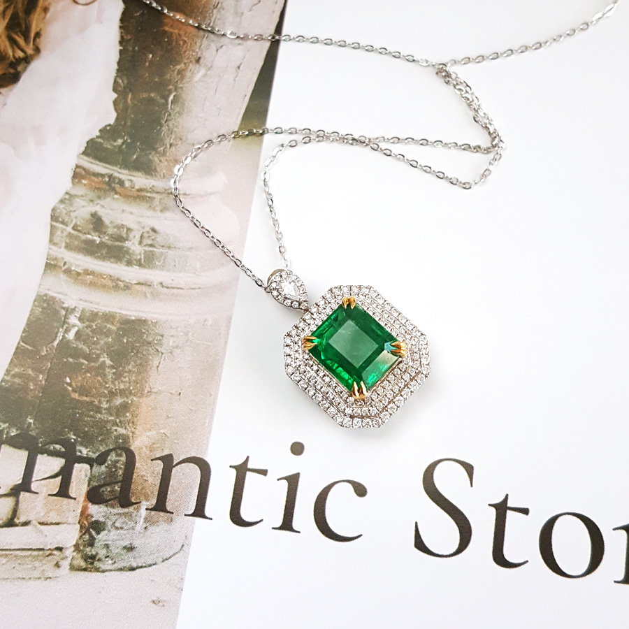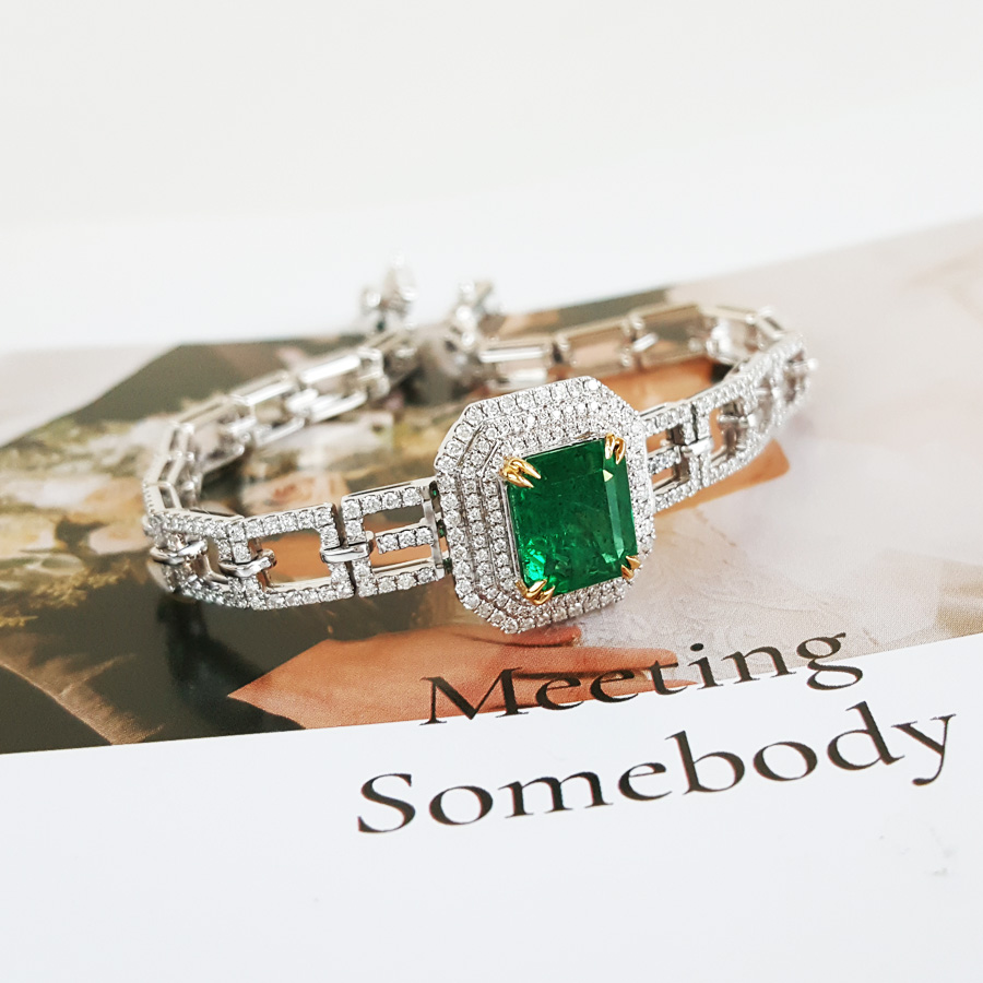 名称 | AU750收藏级白金豪镶钻镶天然3.28克拉微油木佐绿祖母绿手链、吊坠项链两用款 |