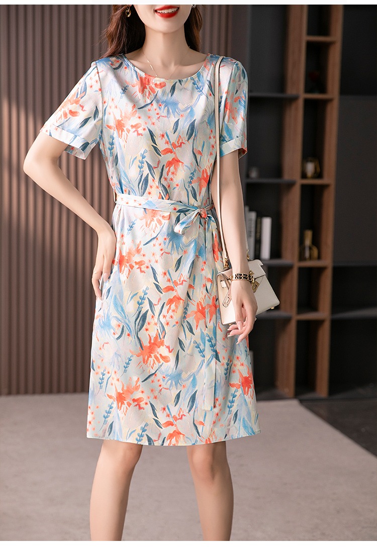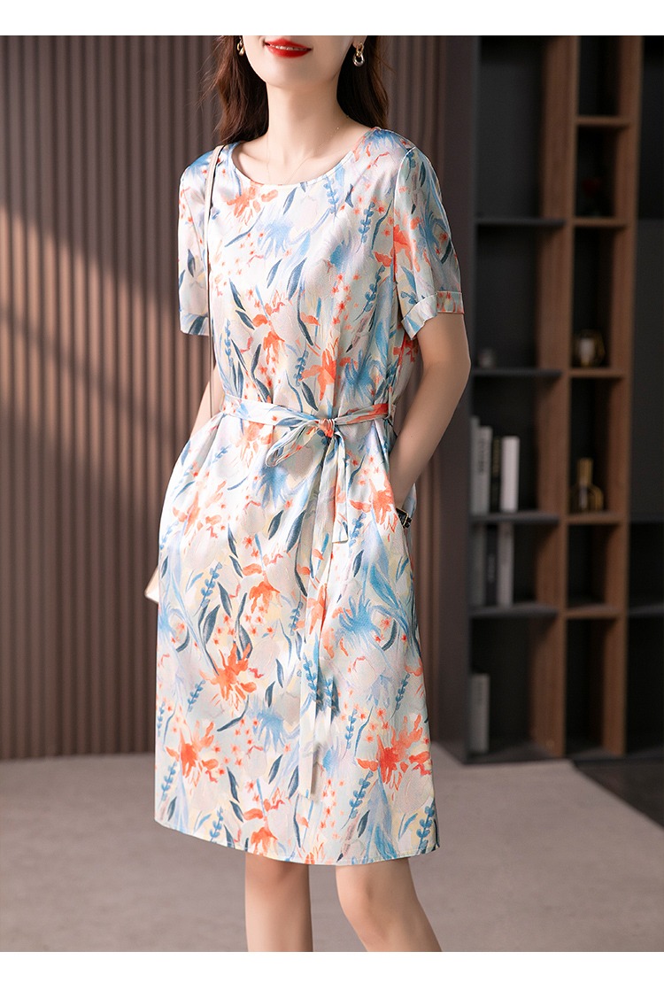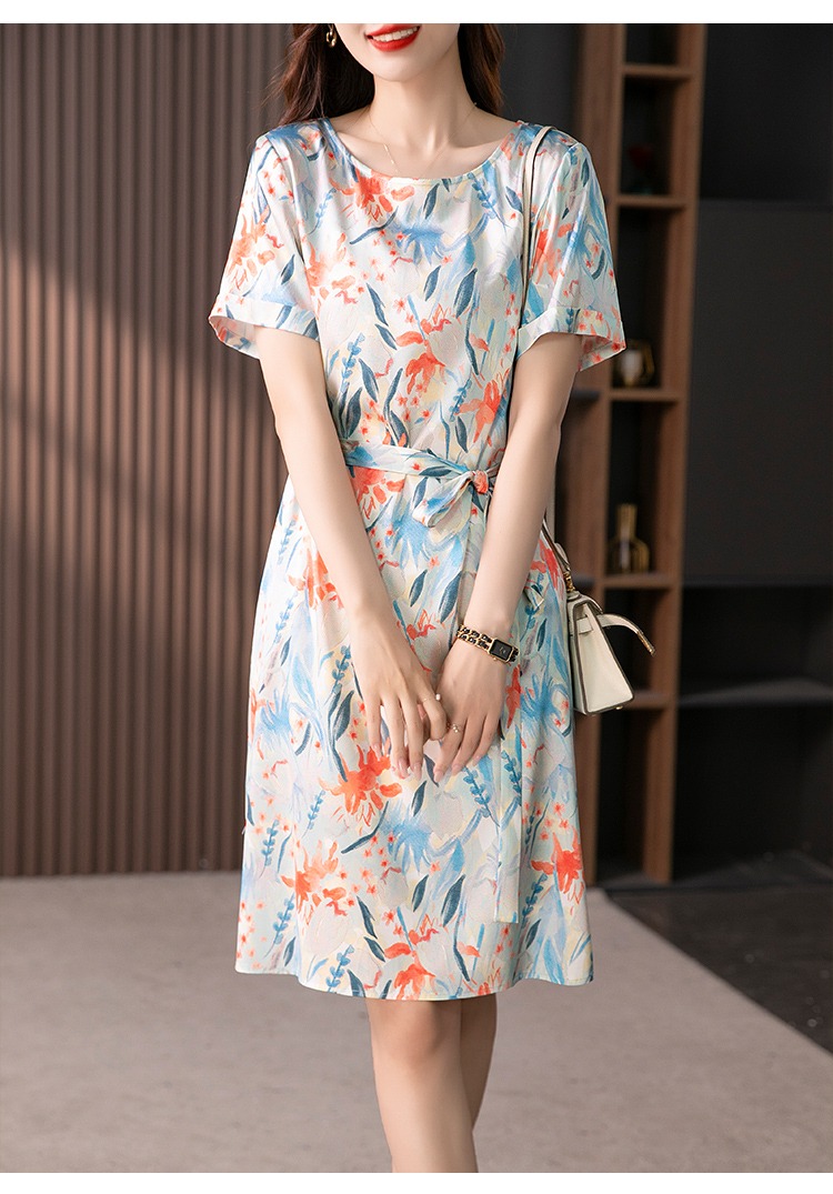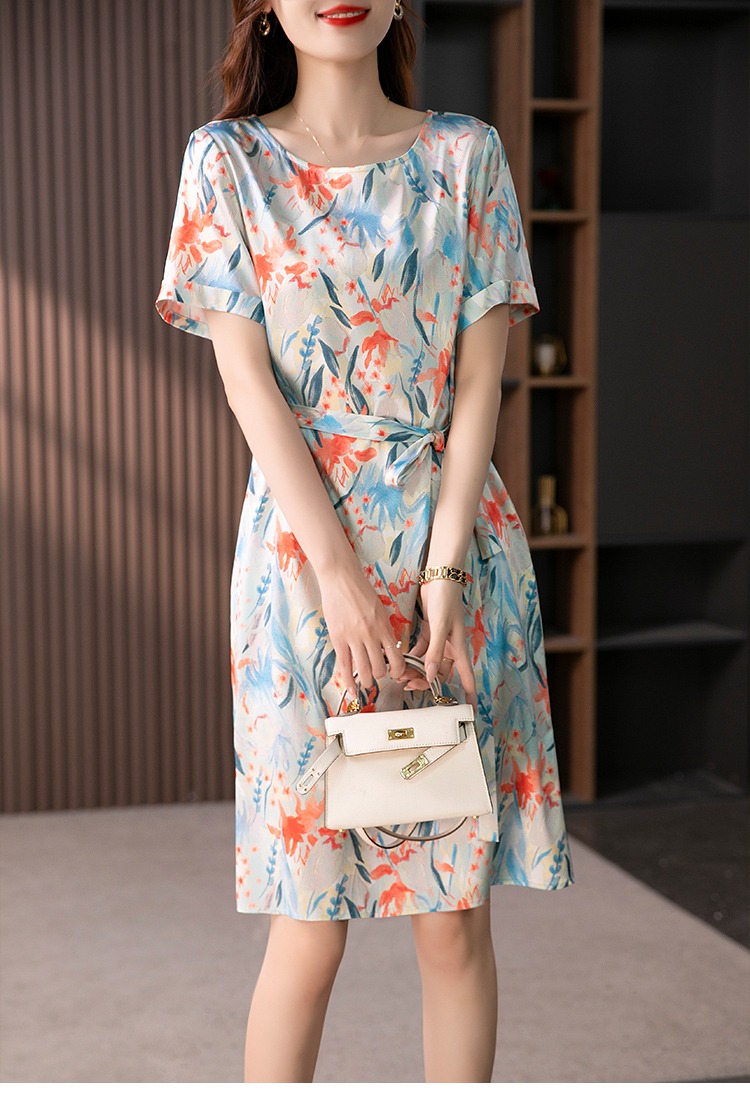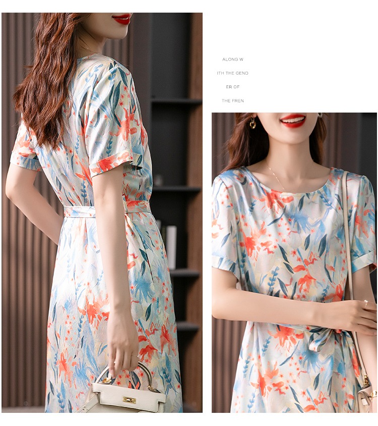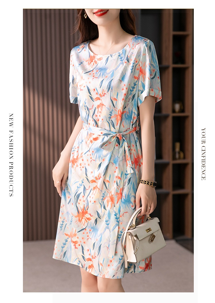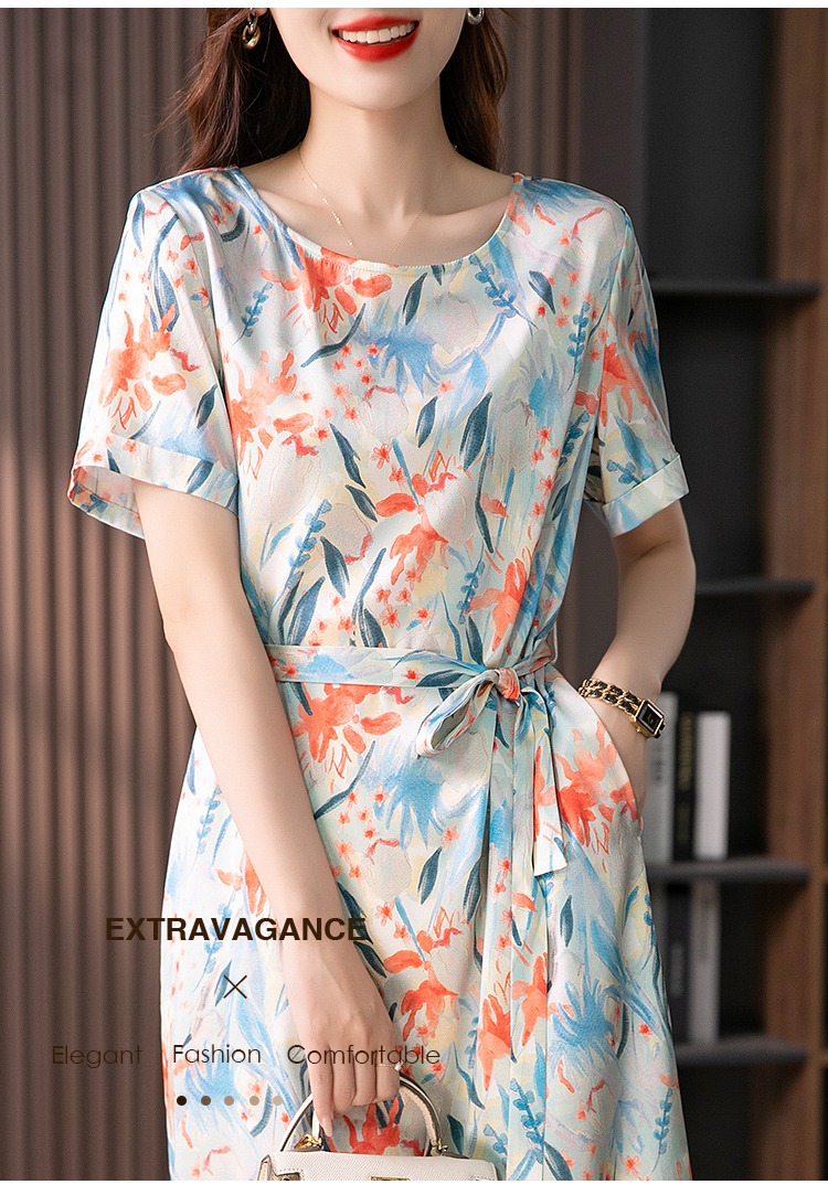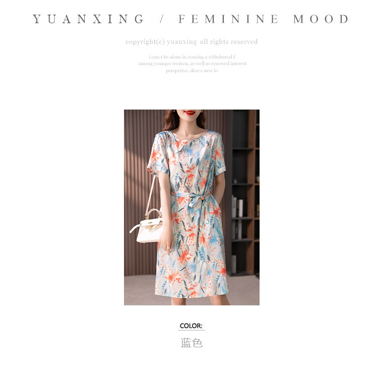YX【定制30天】高级感显瘦真丝连衣裙女短袖2024夏季新款韩版气质桑蚕丝裙子