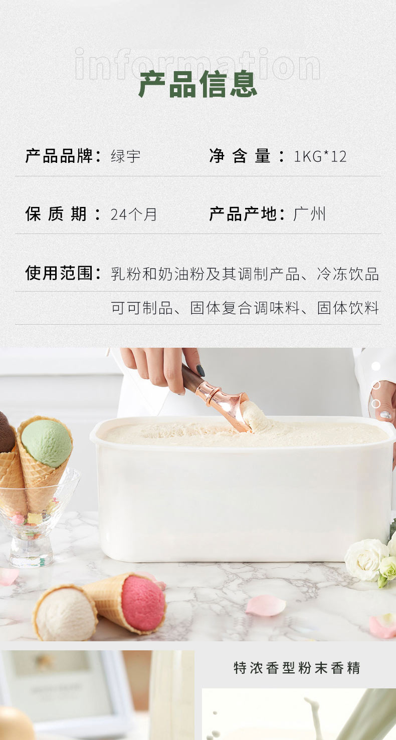 绿宇牛奶香粉1kg*12(食品用香精粉末香精)【178】