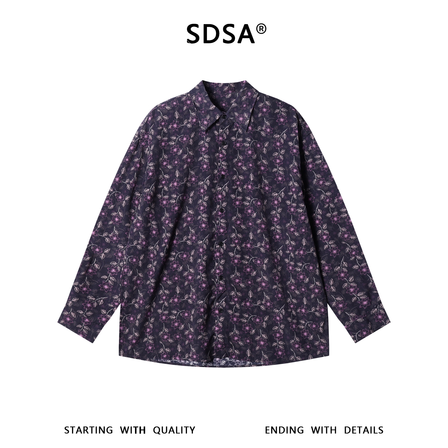 SDSA男装2026新款高贵轻奢时尚撞色满印植物花卉长袖衬衫百搭休闲