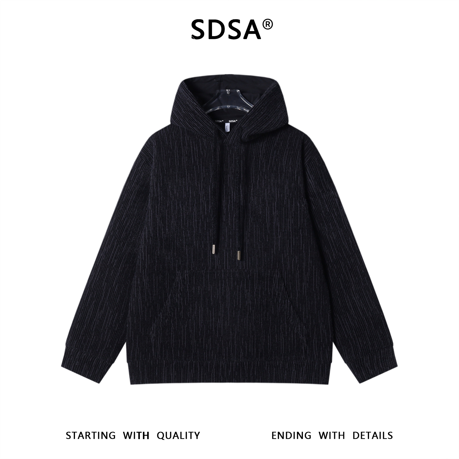 WY1414SDSA男士秋冬新款痞帅男装潮牌撞色肌理感抽绳连帽卫衣百搭时尚