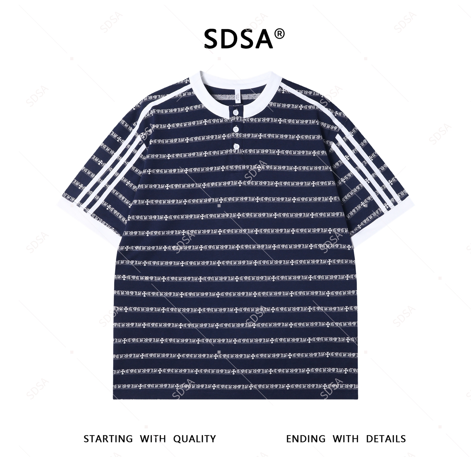 T3564夏季高级感新款男士简约提花条纹半纽扣短袖T恤百搭时尚圆领上衣